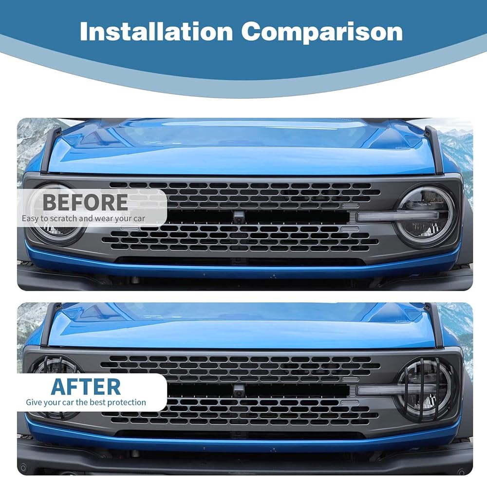 【FITMENT】The headlight lamp cover compatible with Ford Bronco 2021 2022 2023. Not for Bronco Sport