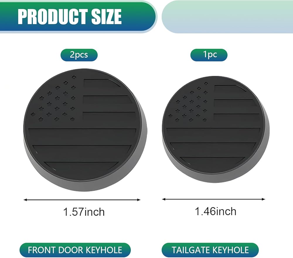 Packing List: After purchase, you will receive two 1.57" front door keyhole covers, one 1.46" tailgate door keyhole cover. If you have any product issues, please leave us a message and we will help you.