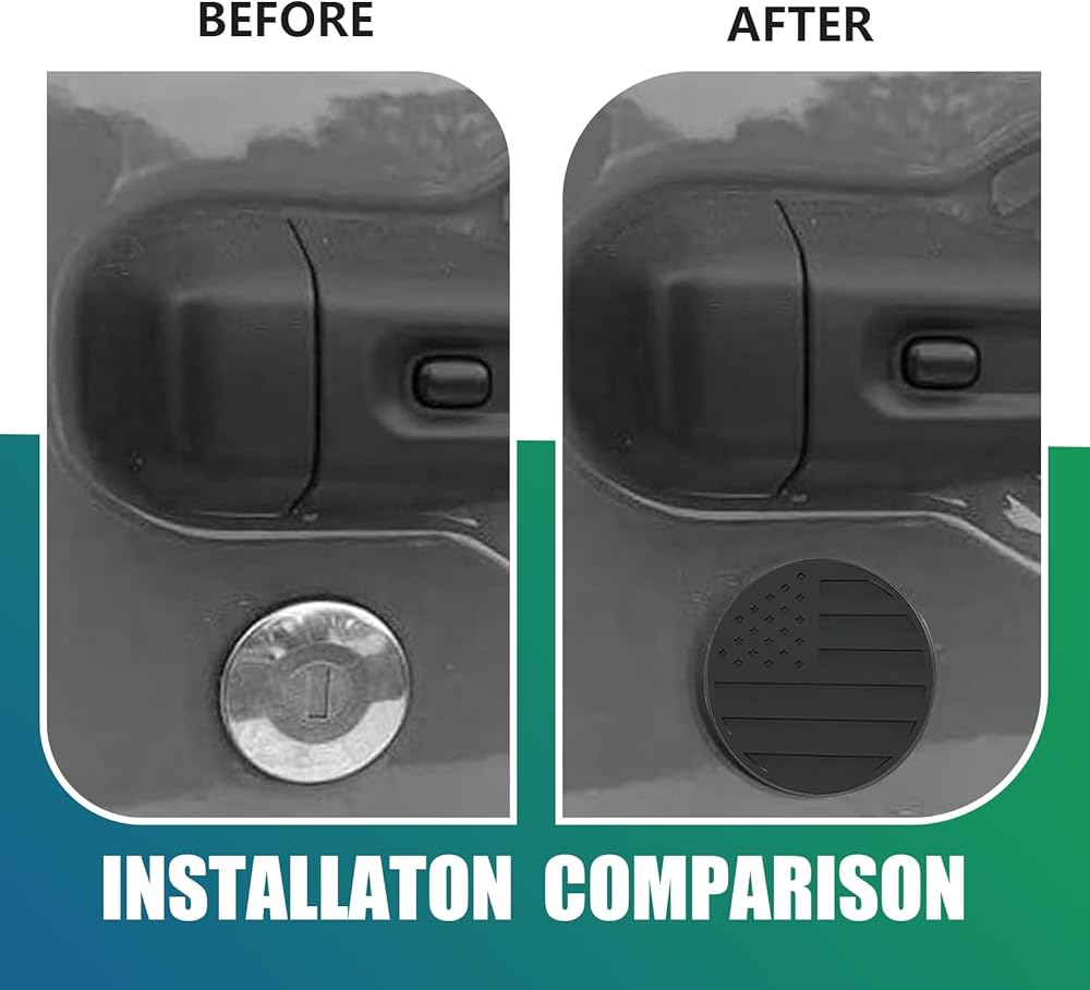 Patriotic Decoration: The surface of the keyhole is decorated with the American flag badge, with a 3D texture and exquisite and advanced. The versatile black design can match the appearance of any color of the vehicle, making your car more fashionable and cool.