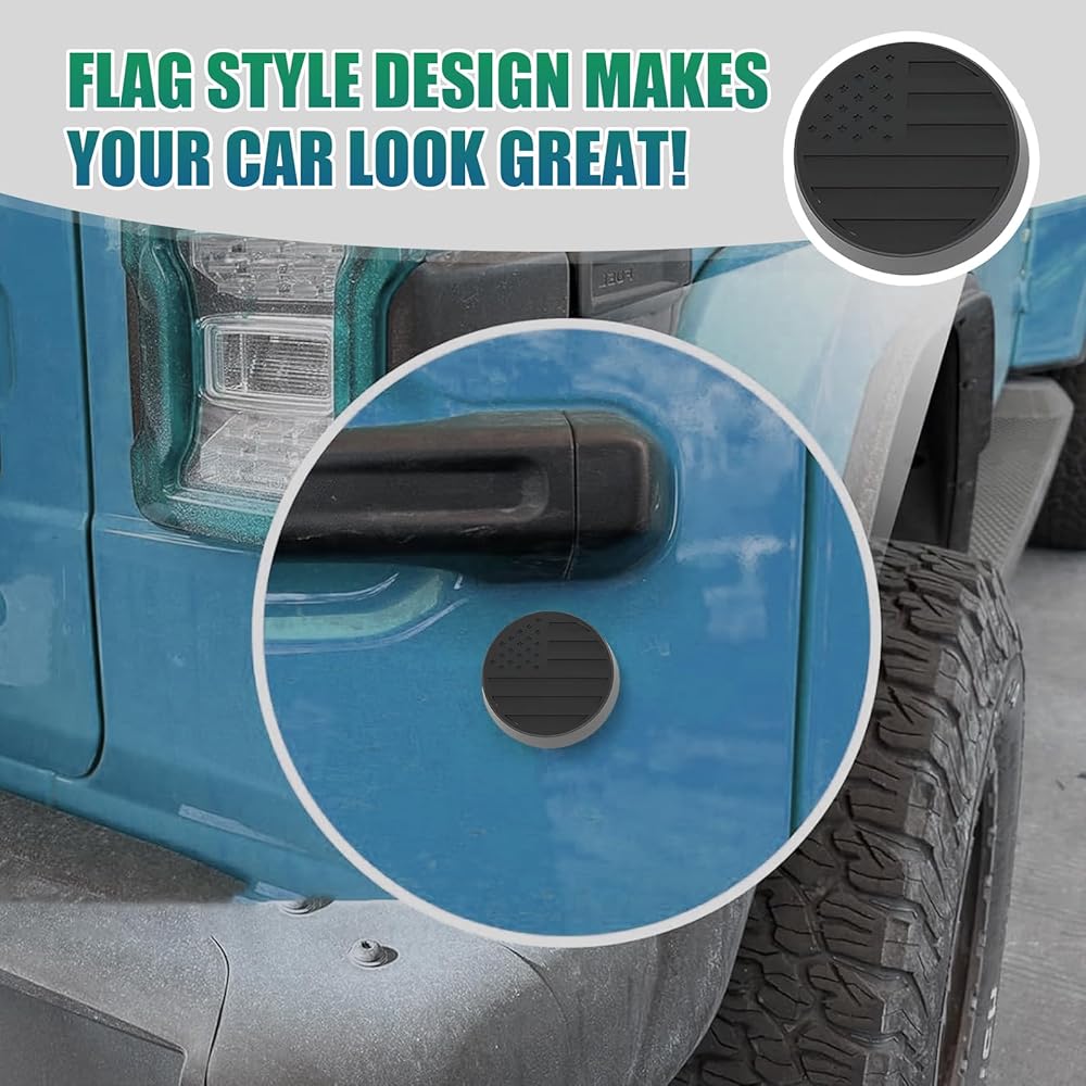 nodteem 3 PCS Car Door Keyhole Cover, 1.57" Front Door + 1.46" Rear Door Personalized American Flag Fender Door Keyhole Trim Protective Cover, Compatible with Jeep Wrangler JK JL JT Gladiator (Black)