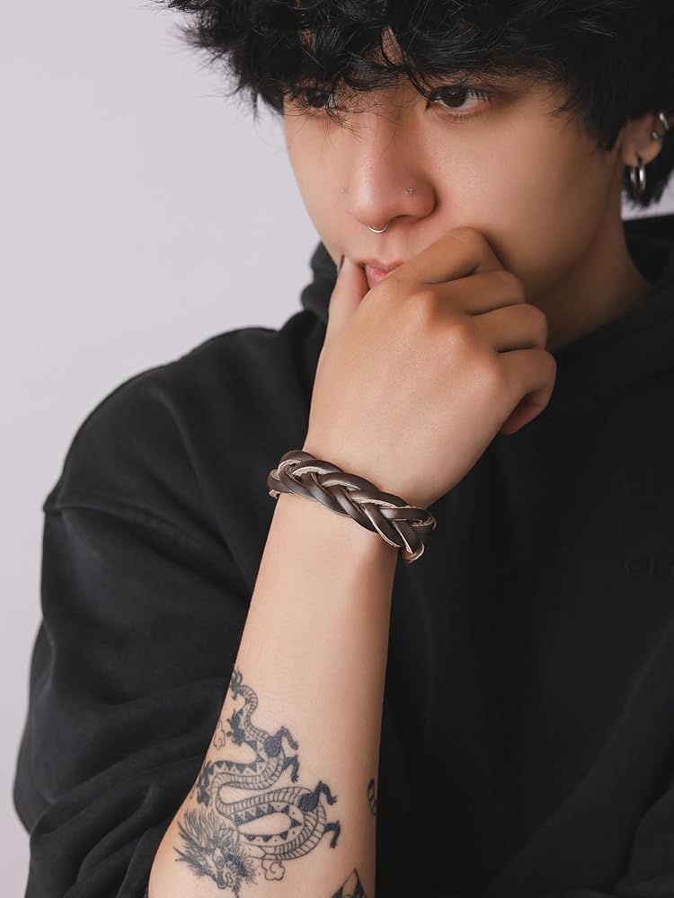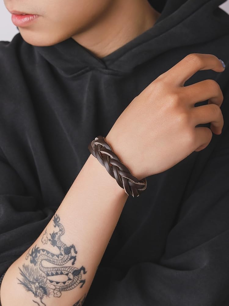هيكل مجدول متين: يوفر الجلد المضفر بدقة كلاً من الأناقة والمتانة، وهو جاهز لتحمل الظروف القاسية التي يتعرض لها الارتداء اليومي.