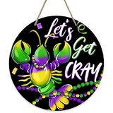ديرورو ماردي غرا جراد البحر علامة الباب الأمامي، دعونا نحصل على جراد البحر كراي نيو أورليانز كرنفال الخشب باب شماعات في الهواء الطلق ديكور الشرفة الخارجية، الخرز إكليل خشبي داخلي الجدار شنقا الديكور