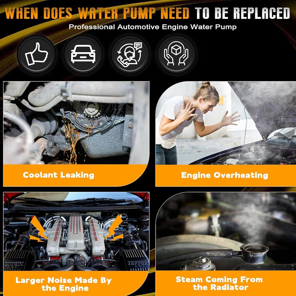 ✅PERFECT FUNCTION: The function of the water pump is to pressurize the coolant and ensure its circulation in the cooling system. In general, the water is continuously circulated through the radiator engine block to remove heat to ensure that the engine is not too hot.