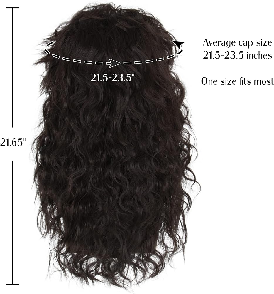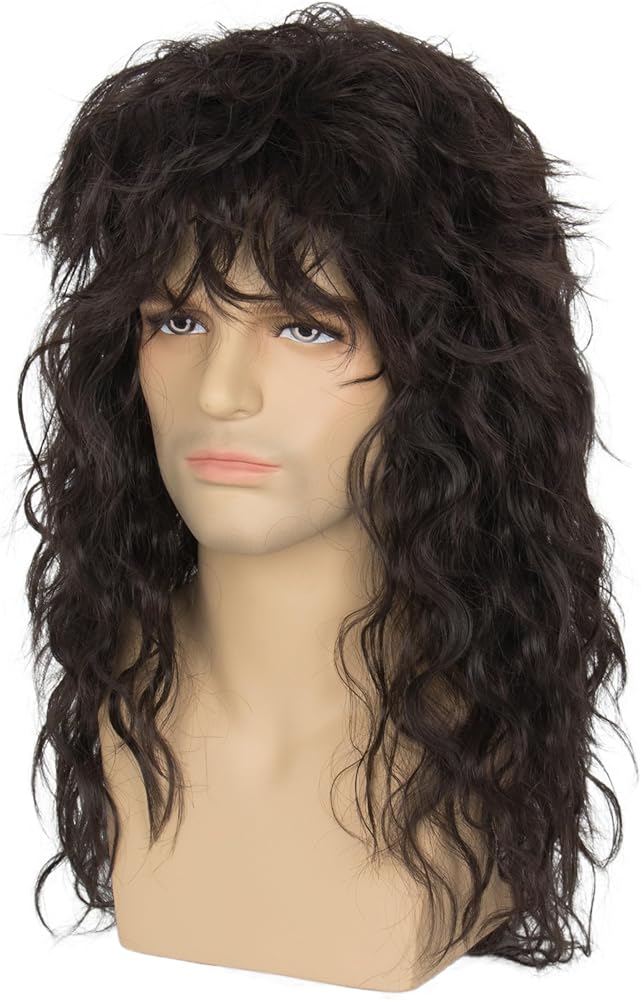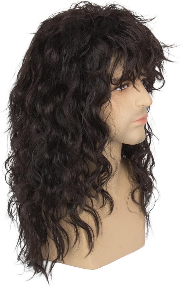 miss u hair 80s Punk Wig Long Curly Brown Wig Men Heavy Metal Party Cosplay Halloween Wig