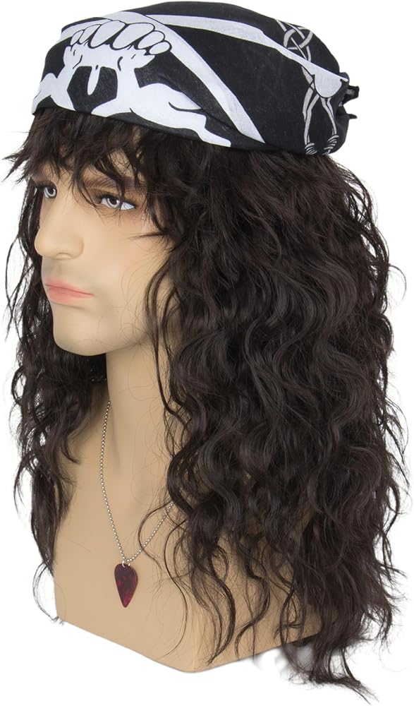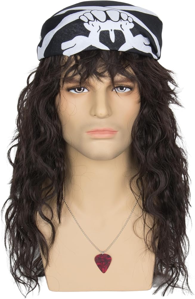 Package include: 1* Men 80s Wig, 1*Necklace, 1*Bandana, 1*Wig cap.