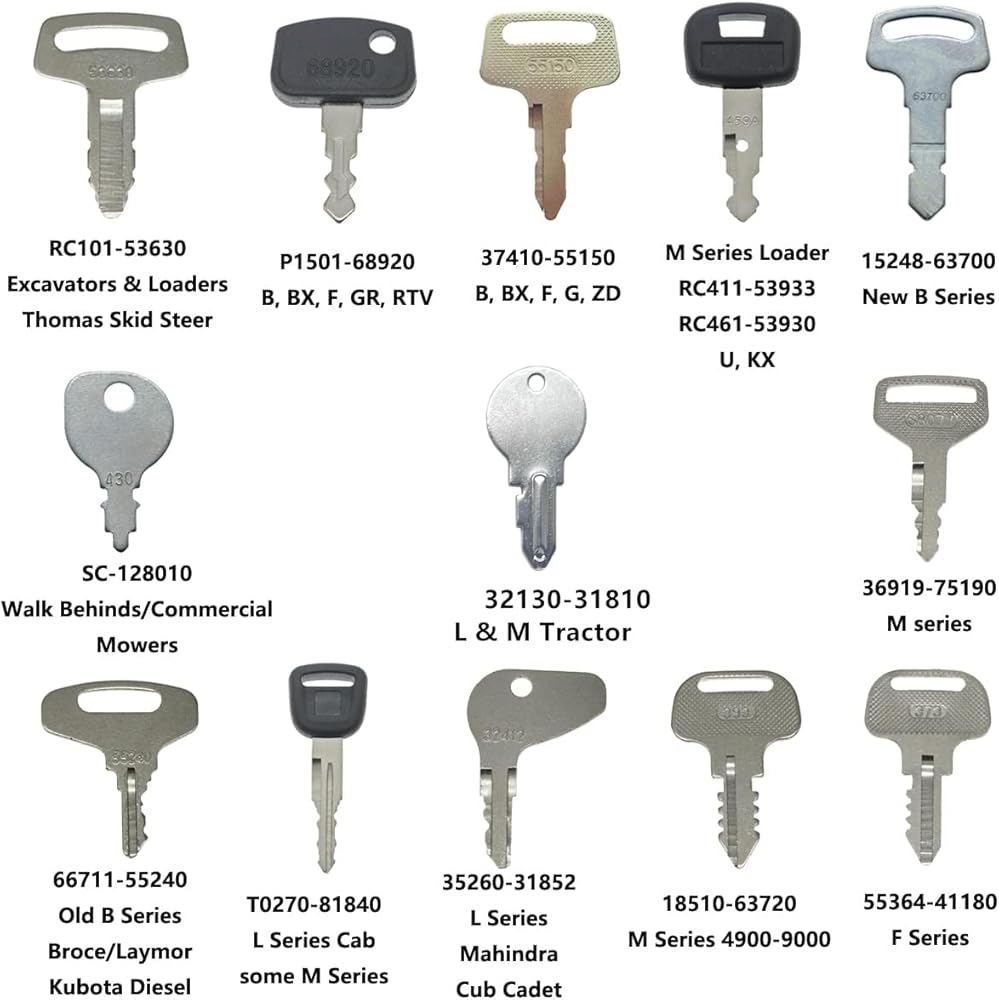 13 Different Keys For Kubota Tractor and Equipment , This is the largest Kubota Key Set Available!