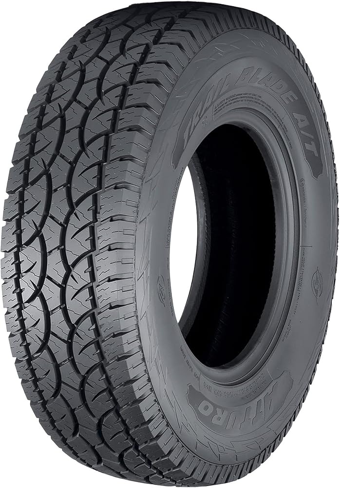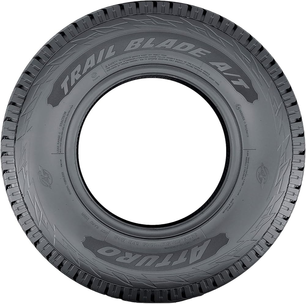 The Atturo Trail Blade A/T tire is designed for use on light trucks and SUV and offers drivers better traction and performance on- and off-road. A durable rubber compound protects the tire against damage for a longer tread life, and the Trail Blade A/T's heavy-duty carcass boosts load carrying capacity. Large shoulder blocks improve handling performance, and the Trail Blade A/T's deep sipes improve grip on muddy, wet, and snowy surfaces while wide grooves channel water out of the footprint to reduce the risk of hydroplaning on wet roads.