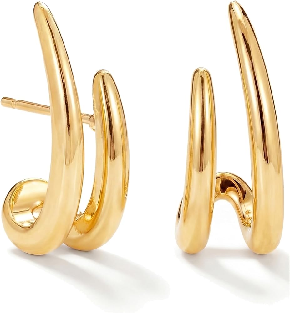 • أقراط ذهبية: مصممة لتعانق أذنيك، هذه الأقراط الذهبية مريحة وأنيقة. مطلية بالذهب عيار 14 قيراط. هذه الأقراط الرقيقة الملتفة هي طريقة سهلة لإضافة شيء فريد إلى كل مجموعة.