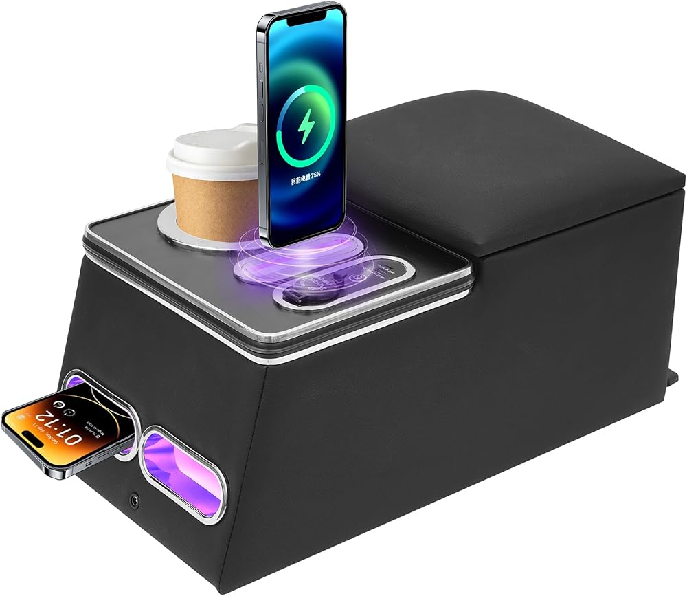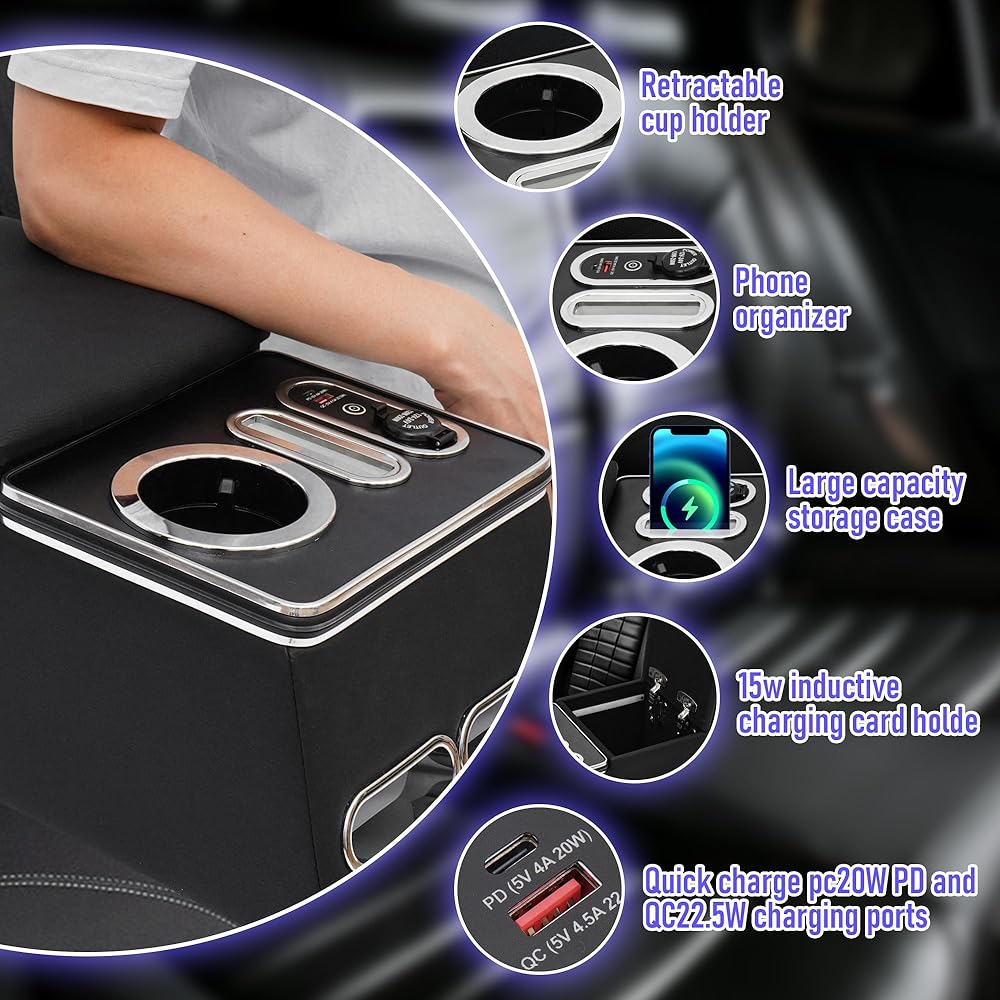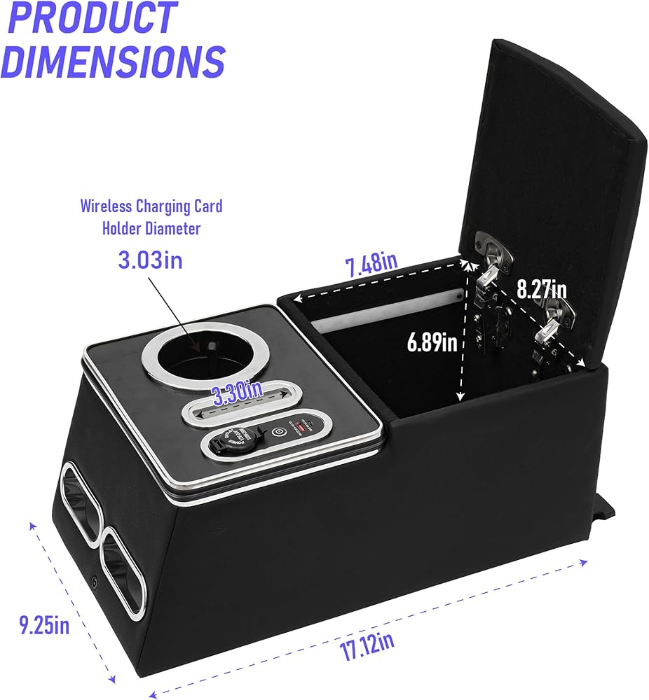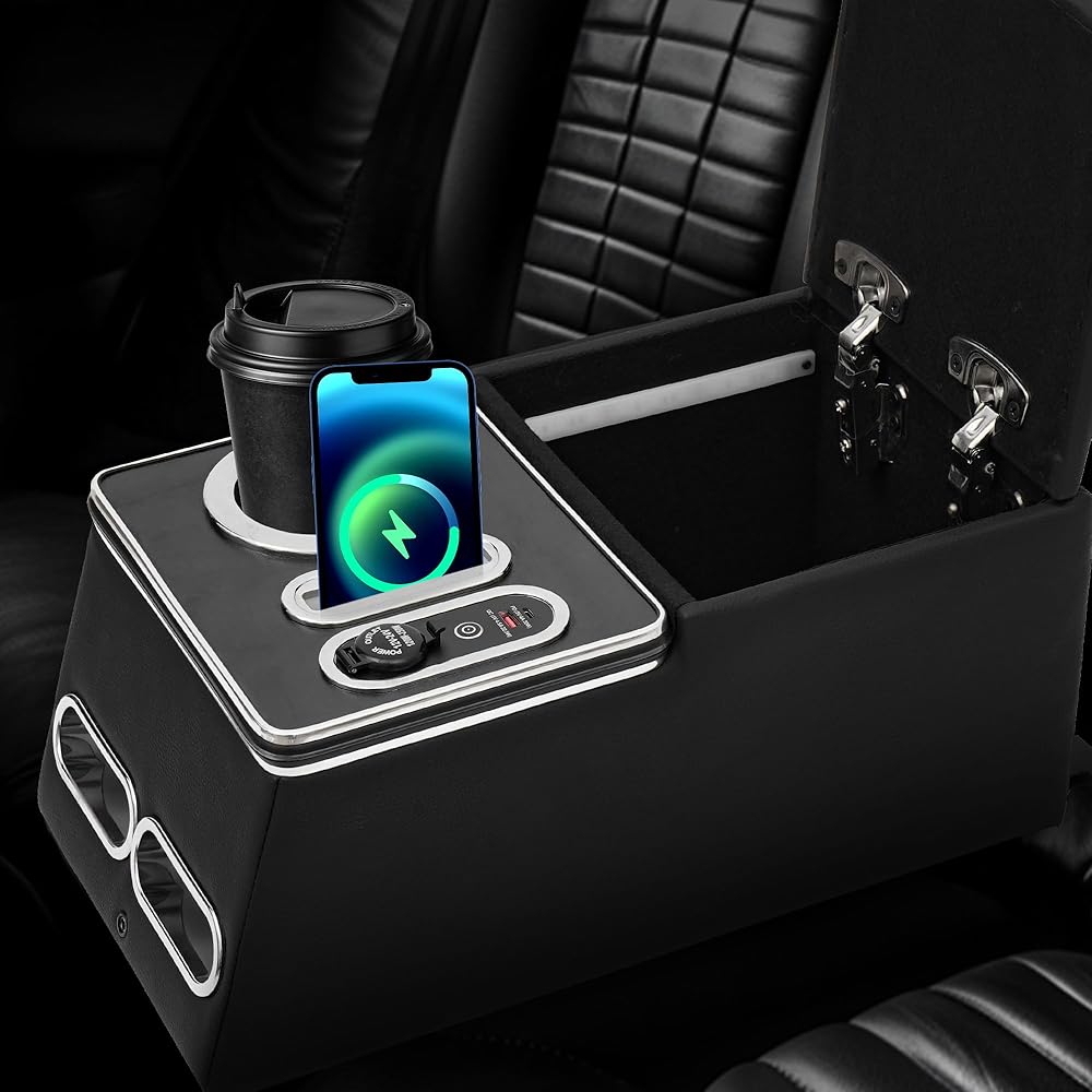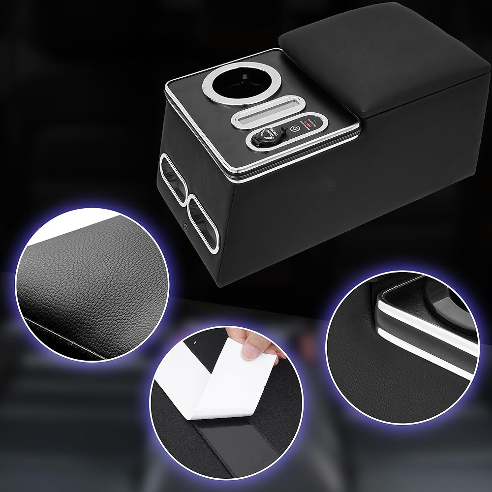 • صندوق مسند ذراع متعدد العمل: قم بترقية منظم وحدة التحكم المركزية العالمية مع حامل أكواب وحامل هاتف، يناسب أي مركبة بدون وحدة تحكم مركزية OEM، سواء كان لديك شاحنة أو سيارة ذات مقاعد مقاعد، تتكيف وحدة التحكم هذه بسلاسة، مما يوفر الوظيفة التي تحتاجها