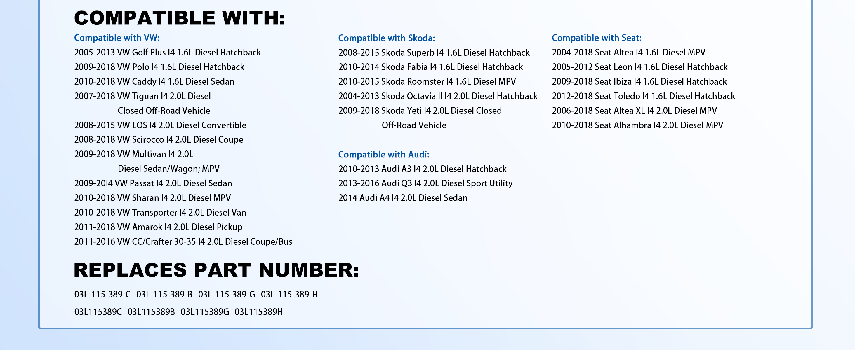 استبدال رقم الجزء: 03L115389C، 03L115389B، 03L115389G، 03L115389H، 03L-115-389-H