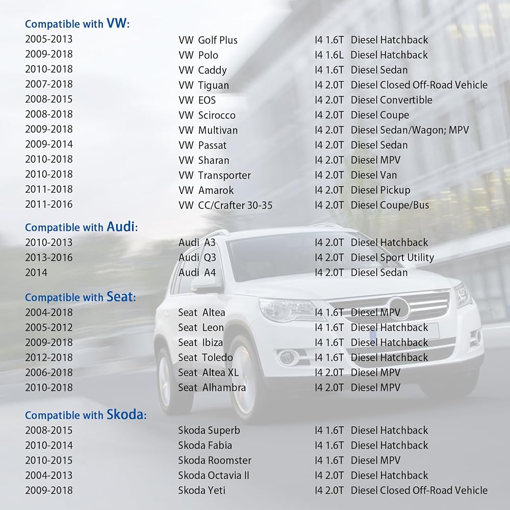 الموديل: متوافق مع فولكس فاجن باسات 2009-2014 2.0L TDI ديزل؛ أودي A3 2010-2013; Q3 2013-2016 2.0L TDI ديزل؛ يرجى تأكيد المزيد من النماذج في الصورة ووصف المنتج