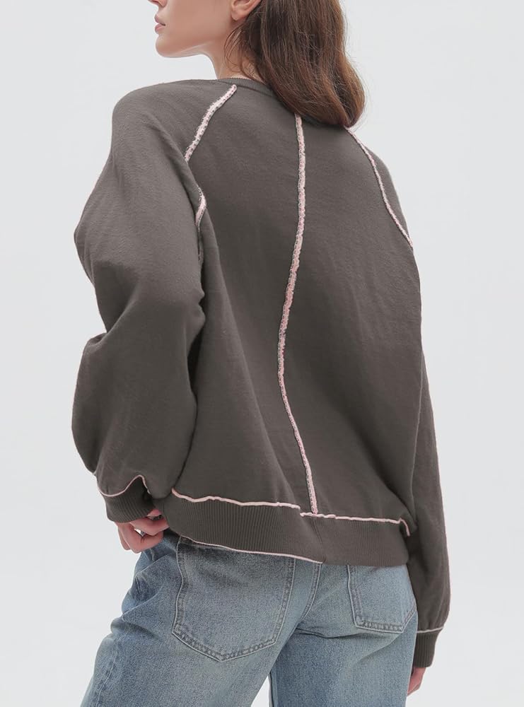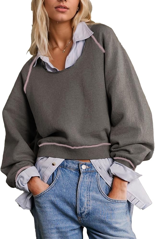 تصميم فريد: سترة فضفاضة بأكمام طويلة للنساء تتميز بتصميم ذو وجهين ونسيج محبوك ثقيل الوزن مع خط رقبة مثقوب وخياطة محددة وأكتاف منسدلة. اختيار جميل لخزانة ملابسك، سيكون عصريًا ويمنحك مظهرًا ساحرًا في الخريف والشتاء
