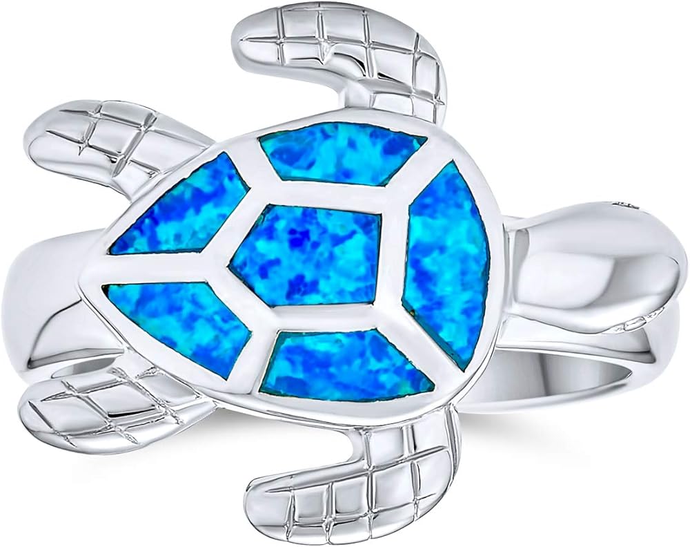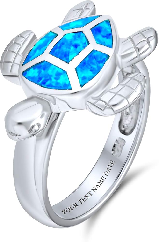 يحتوي هذا الحيوان المائي غريب الأطوار على بقع زرقاء وخضراء من الألوان القزحية الجذابة على حلقات السلاحف البحرية لدينا، مما يحافظ على سباحة سلحفاتنا بأناقة. هذا الخاتم هو تذكير بحري بعطلة هاواي أو البحر الكاريبي الاستوائية أو شهر العسل.