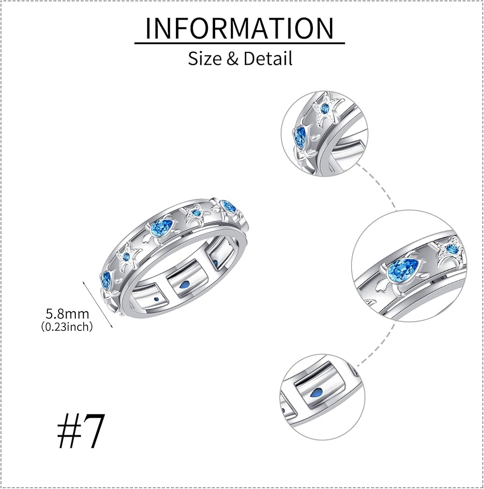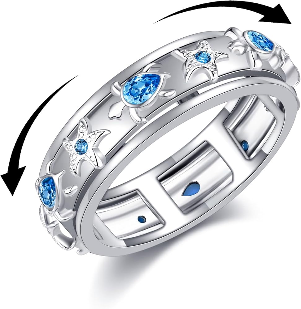 خاتم السلحفاة الدوار من الفضة الإسترليني عيار 925 لتخفيف القلق، هدية مجوهرات نجم البحر السلحفاة للنساء