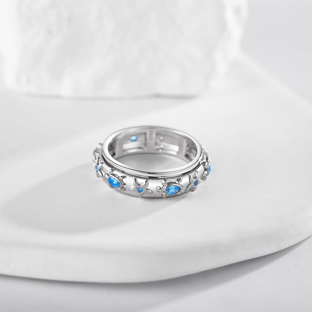 Do you sometimes feel anxious and stressed in life, which makes you unable to escape? This ring can be easily rotated to relieve your anxiety. When you rotate it, you can feel the turtle and starfish spinning in your hand.