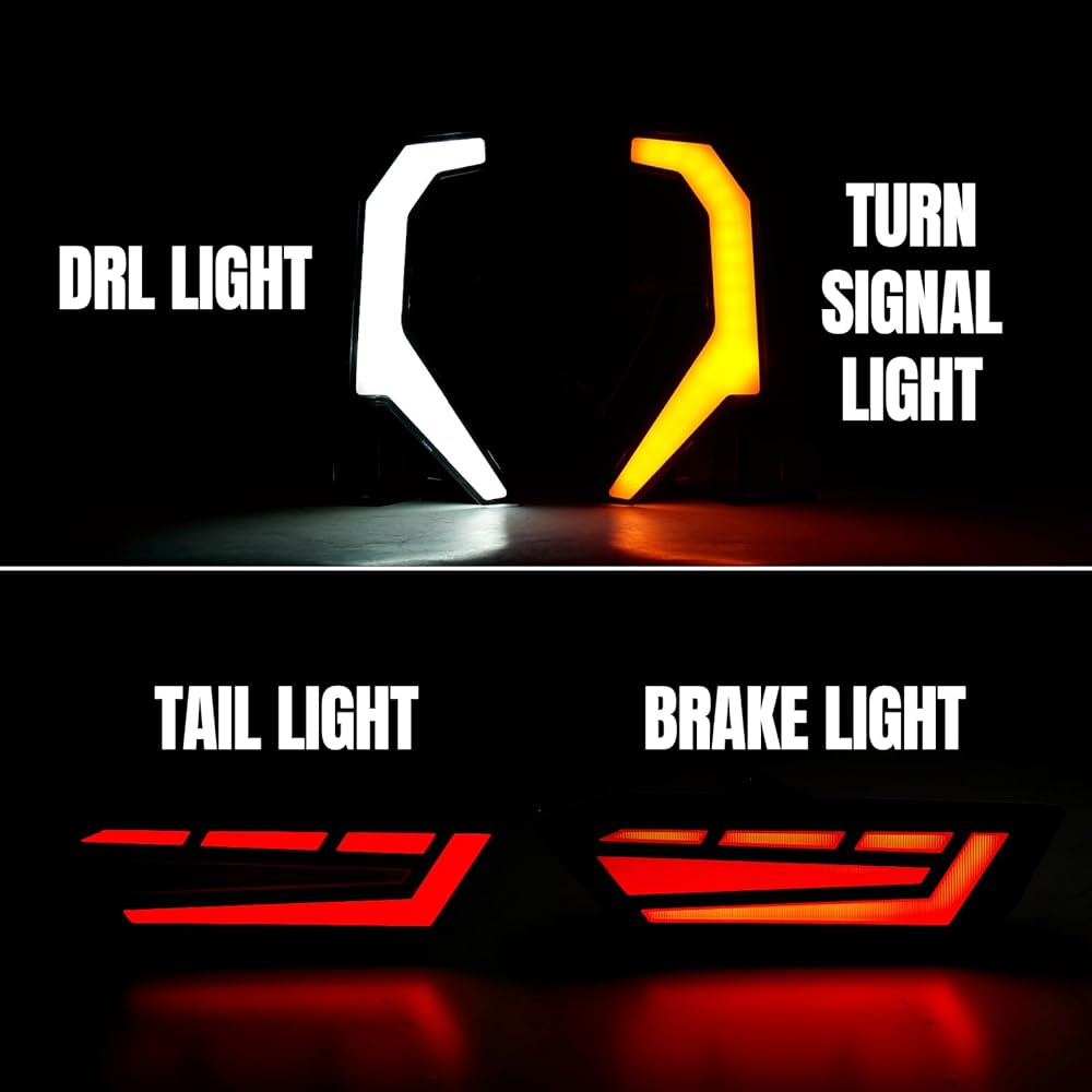 أوضاع الإضاءة المحسنة: توفر مصابيح Grille Accent Fang وظيفة مزدوجة - فهي تعمل كمصابيح تشغيل نهارية وإشارات انعطاف. وفي الوقت نفسه، تتميز المصابيح الخلفية المدخنة بوظيفة الفلاش الفائق لتحسين رؤية المكابح، بالإضافة إلى أضواء القيادة، وبالتالي تحسين الرؤية والسلامة عبر مختلف التضاريس.