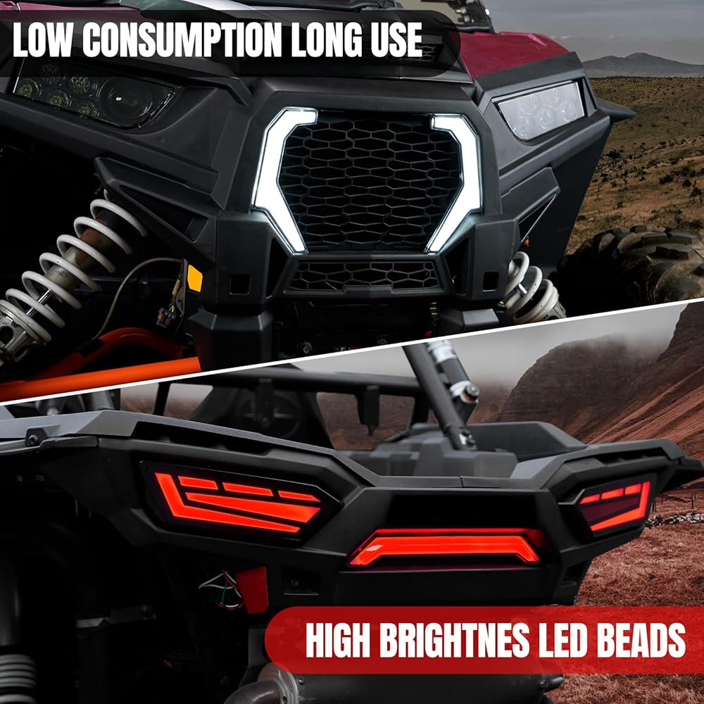 مناسب تمامًا لـ Polaris RZR: تم تصميم مصابيح Polaris RZR XP 1000 وXP4 1000 2014-2018 خصيصًا لطرازات Polaris RZR XP 1000 وXP4 1000، وتم تصميم مصابيح LED ومصابيح الذيل A & UTV PRO بدقة لتحل محل مصابيح المصنع بسلاسة، مما يضمن ملاءمة مثالية وكاملة التكامل مع أسلوب UTV الخاص بك.