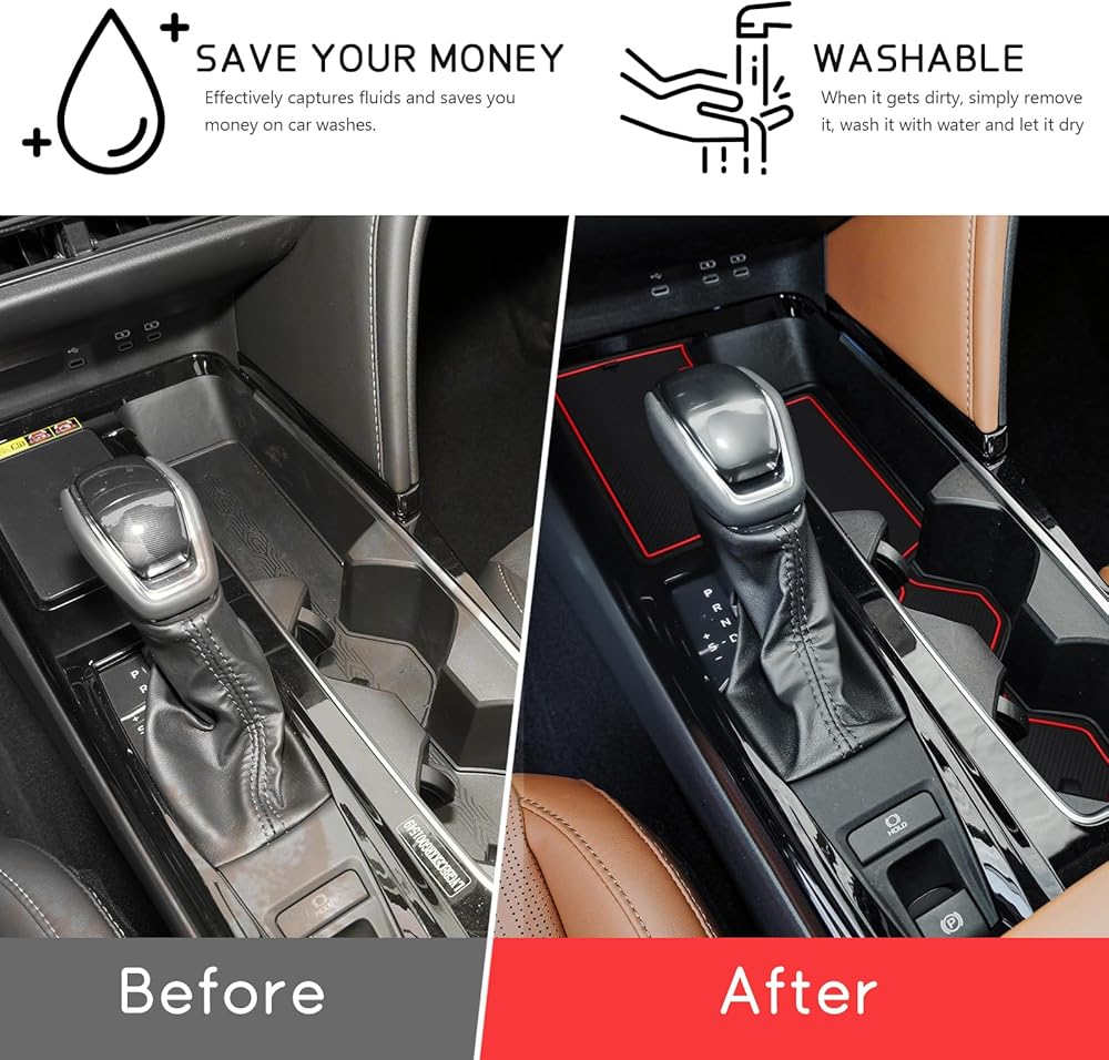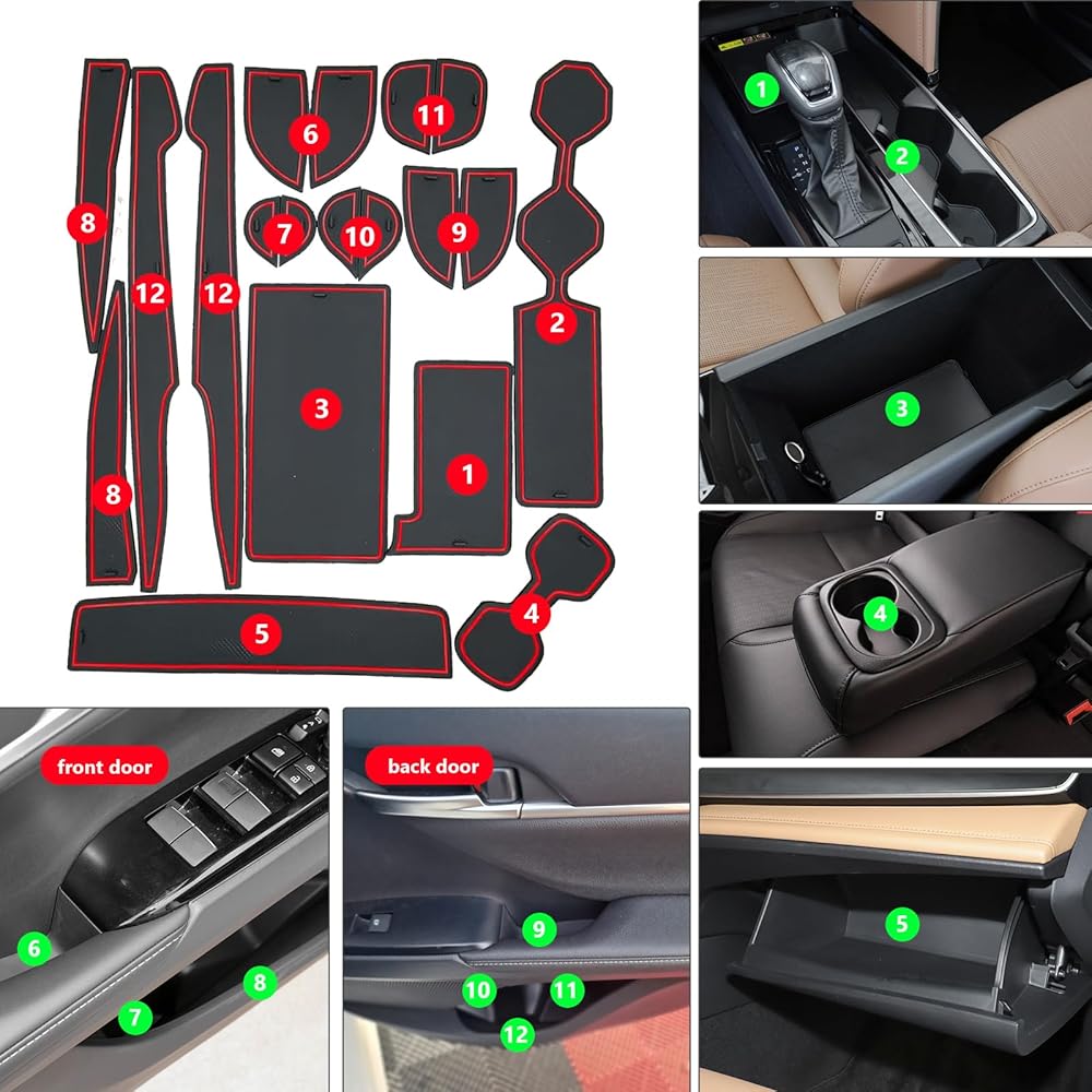 الحماية الكاملة: قم بتغطية جميع بطانات الجزء الداخلي لسيارتك كامري بما في ذلك: جيوب الأبواب، وحاملات الأكواب، ووحدة التحكم المركزية. توفير الحماية الكاملة من الحلوى الذائبة والخدوش والفتات والانسكابات البسيطة والعملات المعدنية الخشخشة، وتوفير أموالك لتنظيف السيارة.
