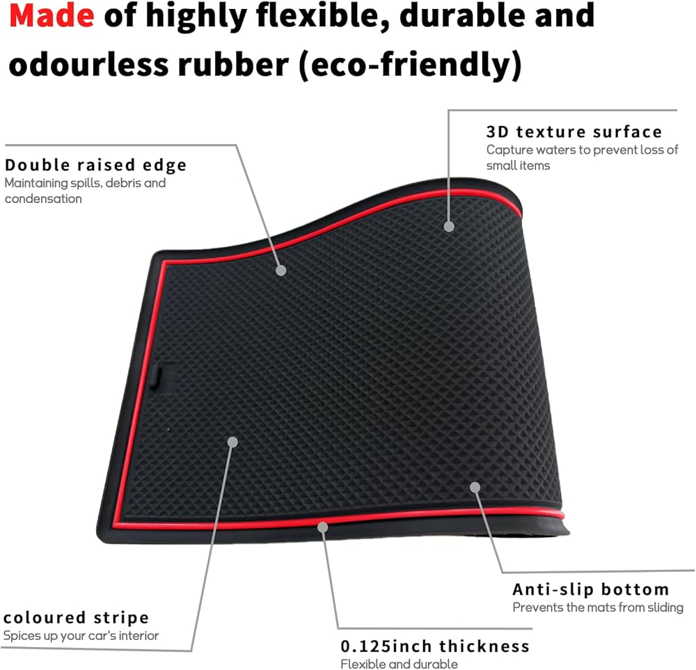 تصميم مثالي: تم تصميم سجادة الكونسول الوسطي خصيصًا بملمس ثلاثي الأبعاد لالتقاط الانسكابات والحواف المرتفعة المزدوجة لاحتوائها. ويمكن ربط الجزء السفلي غير القابل للانزلاق بإحكام بحاملات الأكواب والمناطق المركزية حتى تبقى في مكانها. وتضيف هذه البطانات لمسة لطيفة من الألوان إلى زوايا سيارتك.