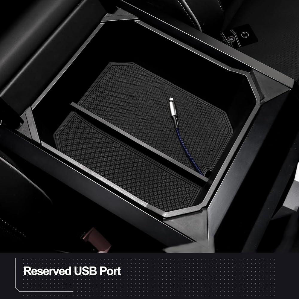 【منفذ USB محفوظ】منظم وحدة التحكم المركزية الخاص بنا لسيارة Tesla Cybertruck 2024، مجهز بشكل مثالي بمساحة تخزين وحدة التحكم المركزية، ويتميز بمساحة محجوزة لواجهات USB بالداخل دون المساس بوظائفها العادية. وهذا يضمن تجربة قيادة سلسة، مما يسمح بالاستخدام المريح لأجهزة USB الخاصة بك أثناء القيادة.