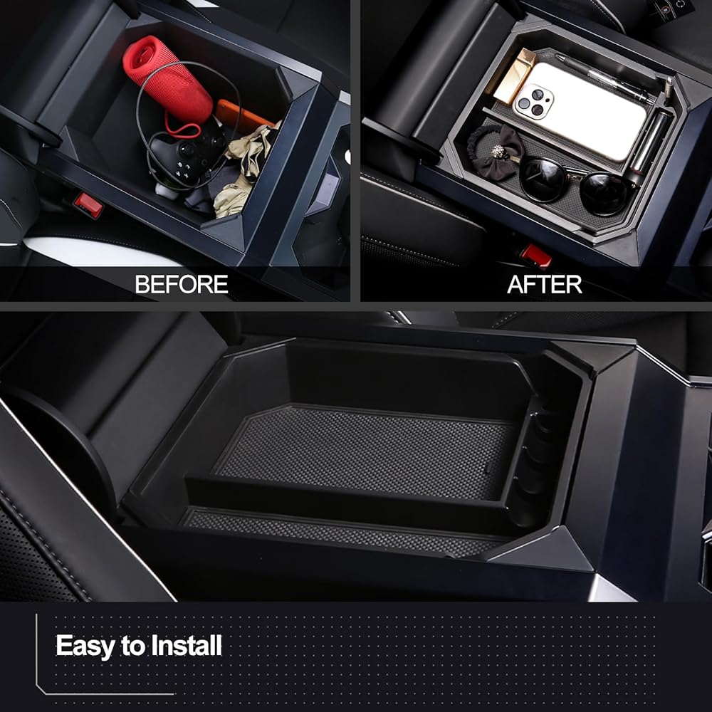 【سهل التركيب】منظم وحدة التحكم المركزية الخاص بنا لسيارة Tesla Cybertruck 2024 هو قالب 1:1 للسيارة الأصلية، ويتميز بتصميم خالٍ من الكبس للتركيب بدون مجهود. ببساطة ضعه في المنطقة المخصصة، وسيكون جاهزًا للاستخدام دون أي أدوات. وفي غضون ثوانٍ، يتم تركيبه بسلاسة في السيارة، مما يوفر الوقت والجهد والمخاوف.