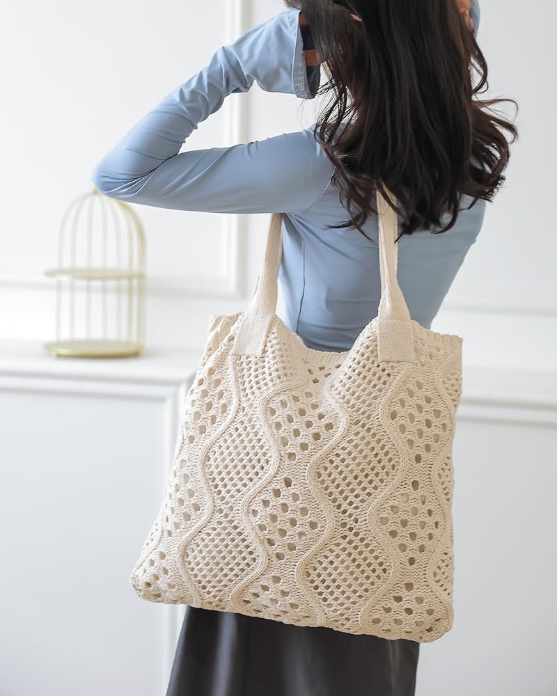 Material: This crochet beach bag is made of high-quality, lightweight, and durable material. And knit tote bag is fold and soft, it's portable for women and not add burden.