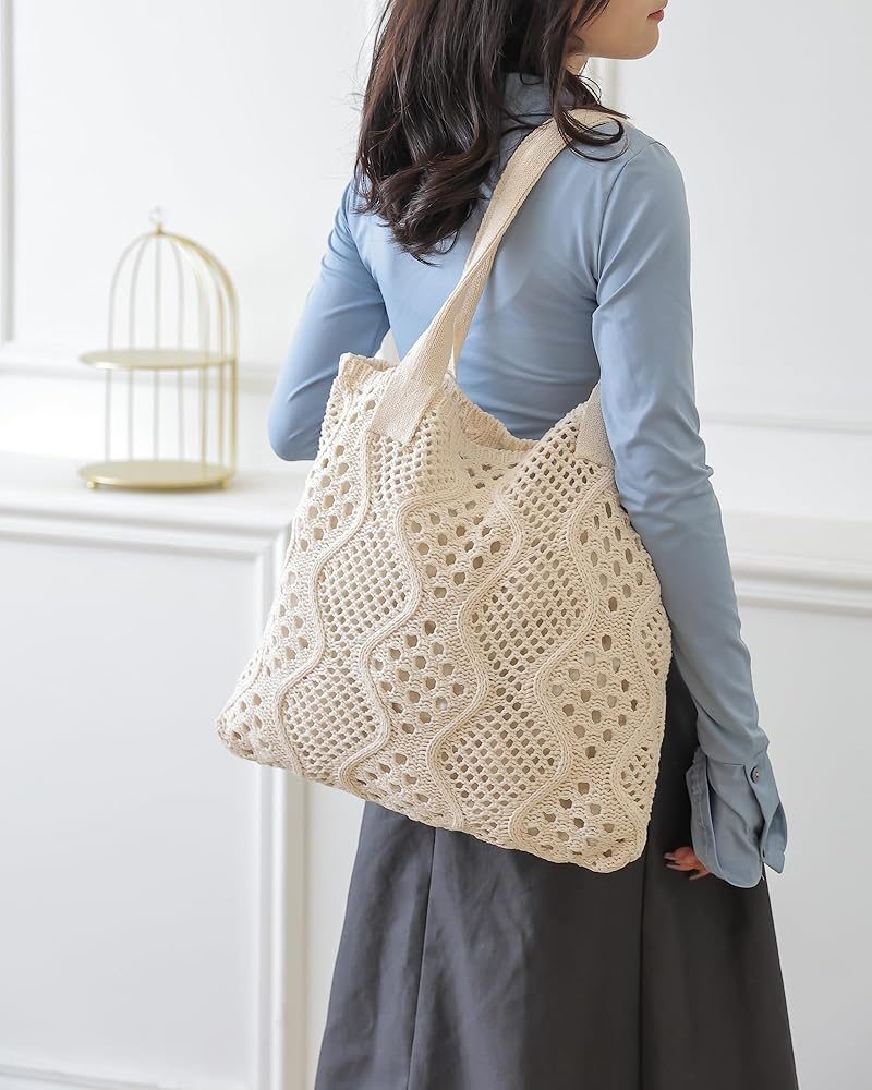 Summer Accessories: The solid colors design adds delicacy and trendiness to the crochet tote. It is not just a summer tote bag but also a decorative work of art, making you more fashionable this summer. The beach bags for women is perfect for various occasions such as the beach, parties, shopping, and dating.
