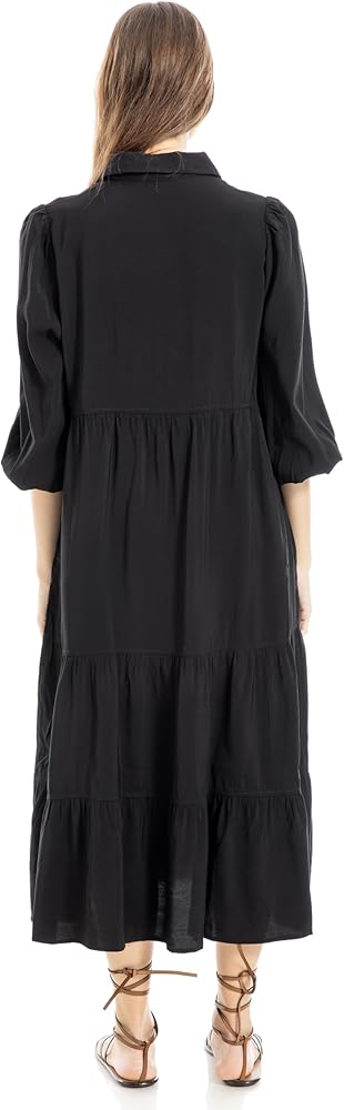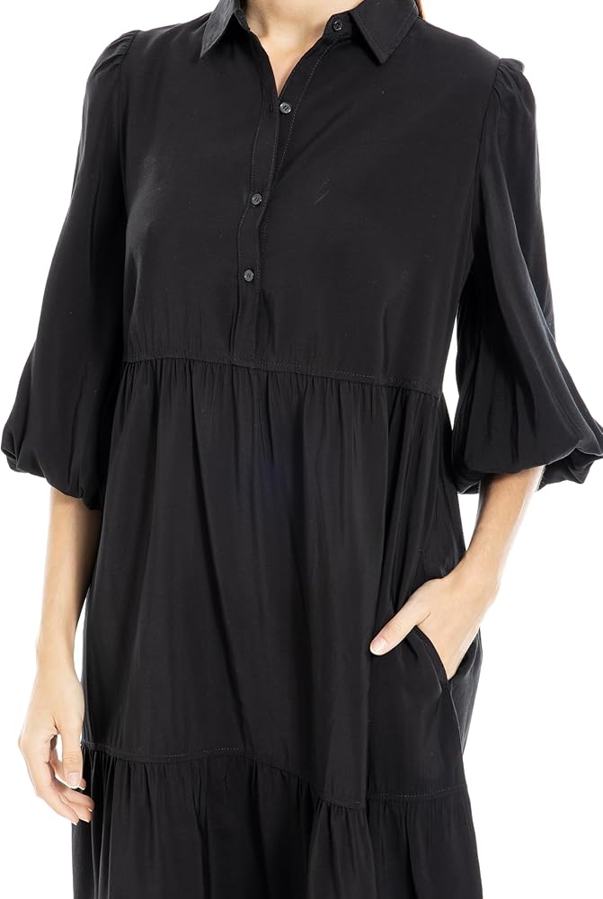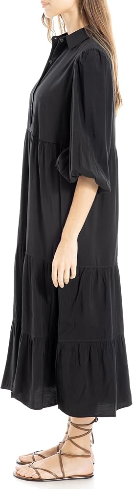 فستان ماكس ستوديو للسيدات 3/4 كم بياقة وأزرار وطبقات، مقاس أمريكي متوسط، أسود