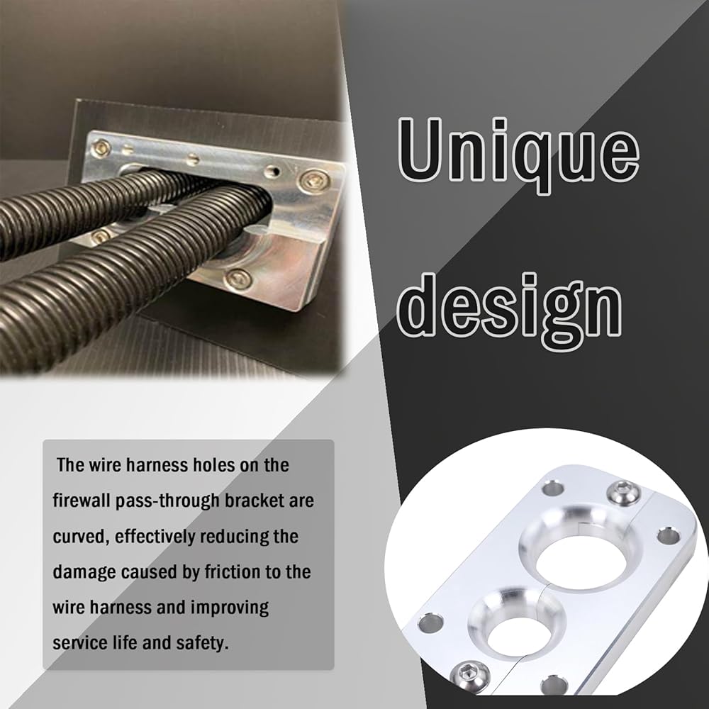 【Direct Replacement】Haphazard installation makes it extremely easy to damage the wiring. So, we billet aluminum feedthroughs for a neat and reliable solution. The curved design of the wiring harness holes greatly reduces damage to the harness caused by friction.