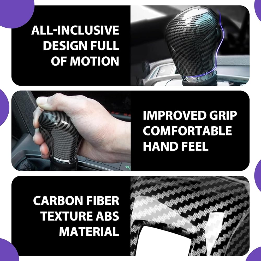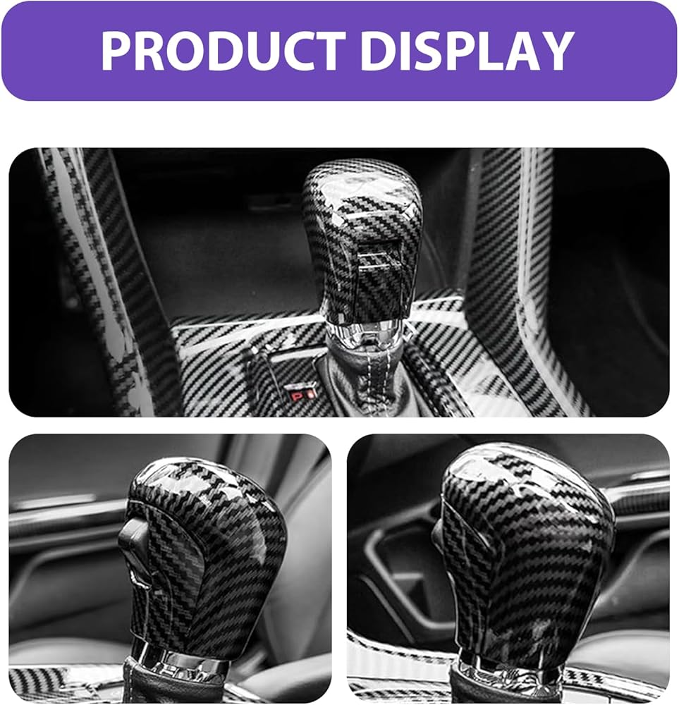 ABS Material: This shift knob cover is made of ABS material, with a smooth surface and texture. Not easy to rust and fade, durable, not easy to break even withstand slight impact, can be used for a long time. It has a carbon fiber texture, clear stripes, and a low-key luxury feel.