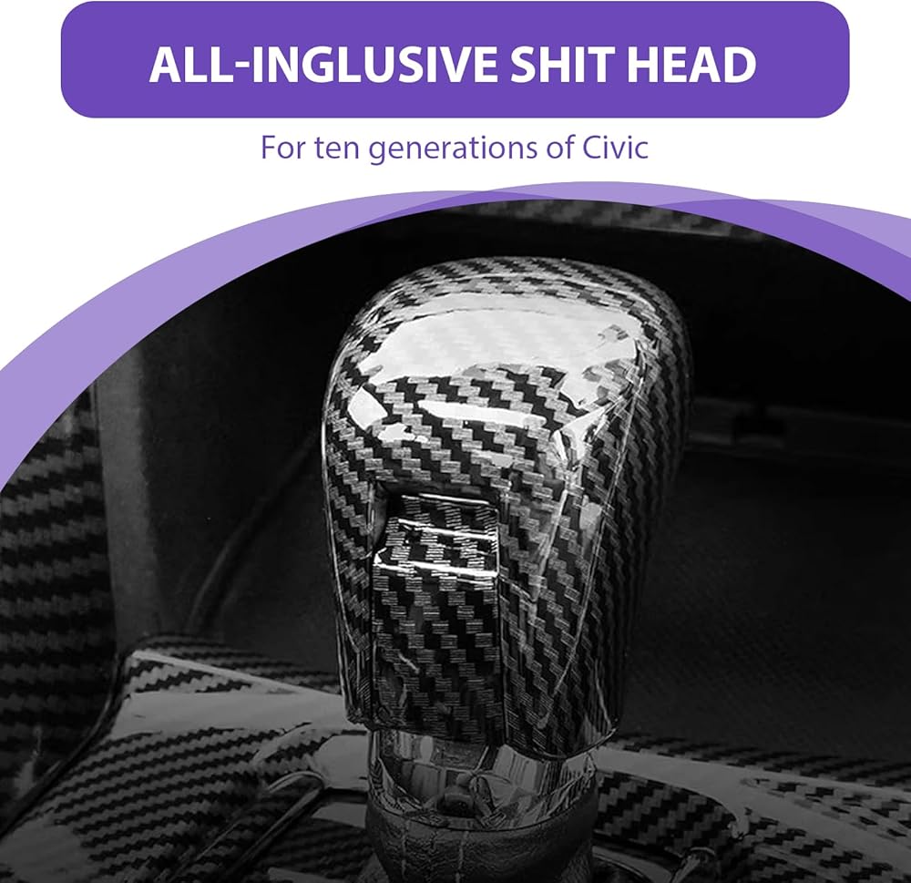 Slykew 1 PC Car Central Control Gear Shift Head, Carbon Fiber Texture Decorated Transmission Shift Knob Cover, Patch Glossy Texture Tnterior Accessories, Compatible with 16th-20th Civic (Red)