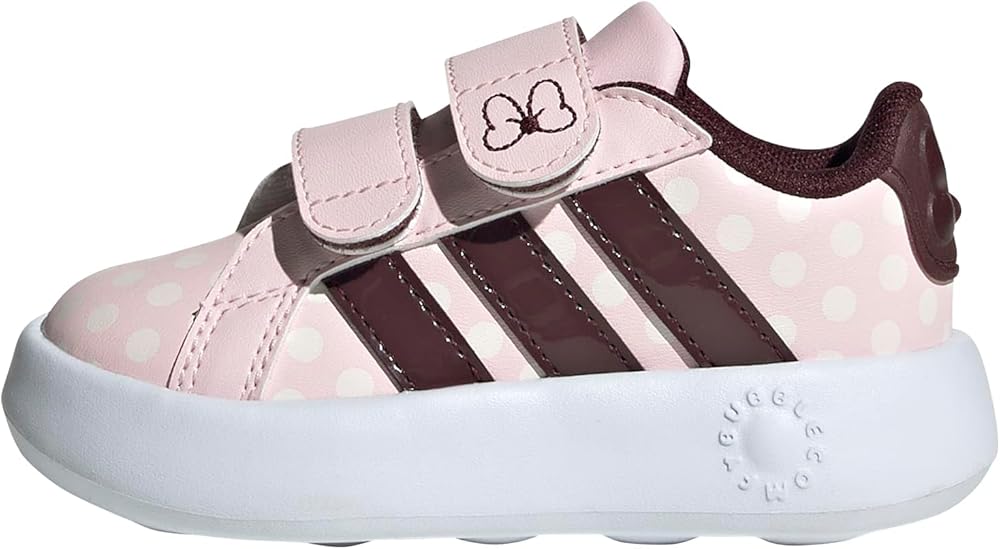 The timeless charm of Disney's Mickey and Minnie Mouse is the highlight of these infants' adidas sneakers. The 3-Stripes get the Disney treatment with a fun scribble pattern, and the graphic shows who's been doing the scribbling. A lightweight leather-like won't weigh down small feet, and the rubber outsole provides good grip.