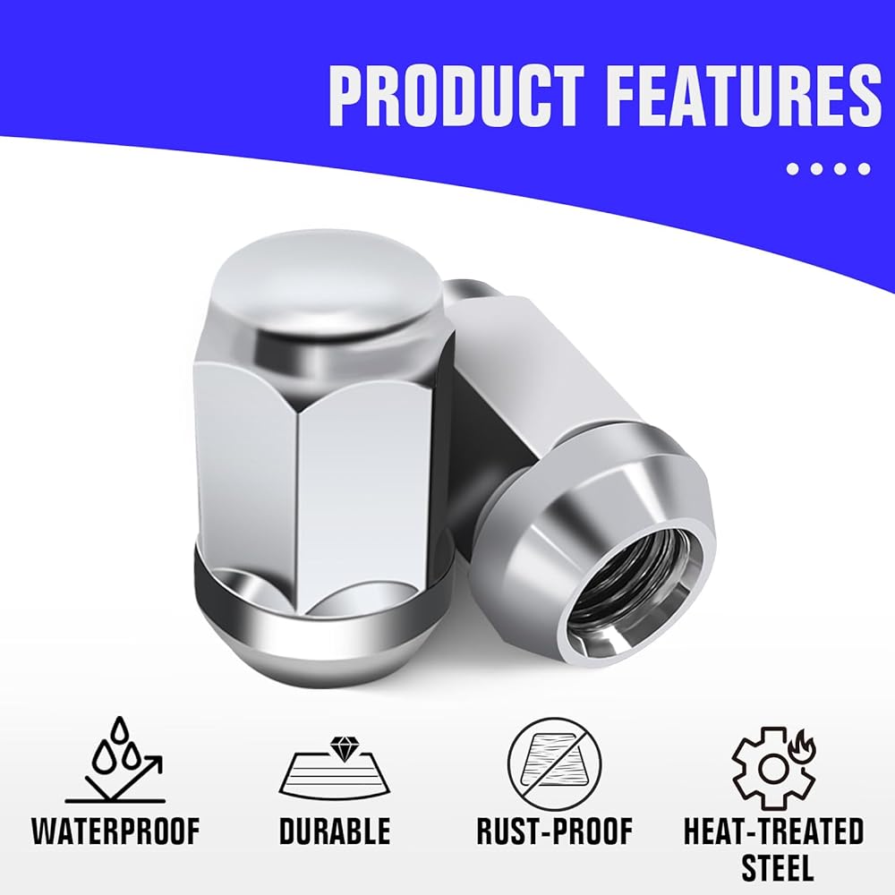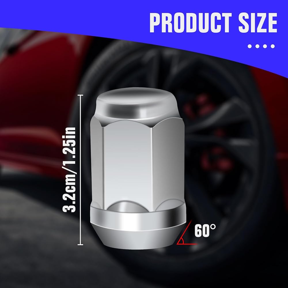 • Specifications:M12 x 1.50 thread spacing,3/4 inch (19 mm) hex, 1.38 inch (35 mm) long,0.87 inch (22 mm) wide,tapered 60 degree seat,thread specifications comply with vehicle standards.(Please check if the wheel seat is suitable before purchasing)