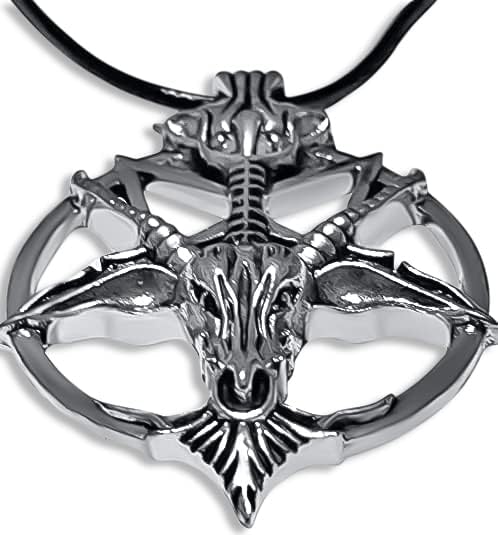 الفولاذ المقاوم للصدأ (2023) قلادة قلادة على شكل رأس الماعز الخماسي المقلوب Baphomet LaVeyan قلادة خماسية مقلوبة LaVey Satainism قابلة للتعديل بعقدة مزدوجة