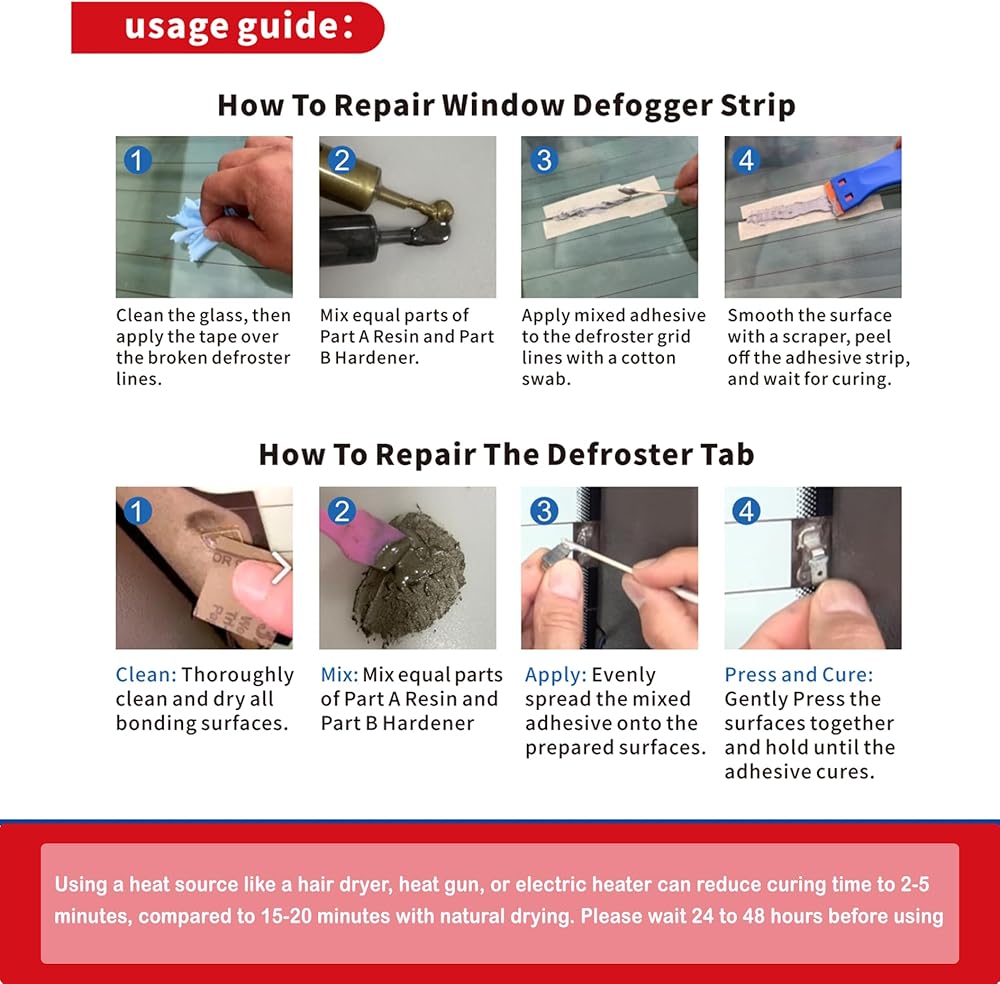 Strong Bonding: Our defroster tab repair kit provides a powerful, long-lasting bond that keeps the defroster grid securely in place, even under bumps and vibrations. It withstands extreme temperatures, ensuring the grid won't loosen or fail, no matter the weather.