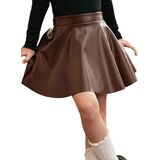 • Features: Pu leather mini skirt for toddler girls, high waisted, skater flared hem, aline skirt
