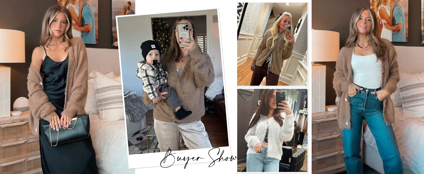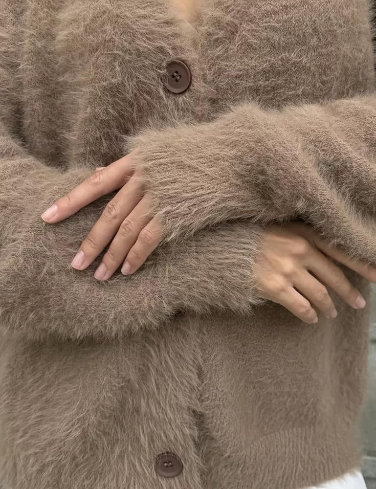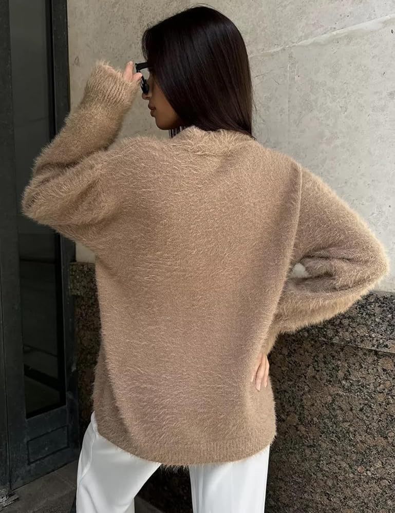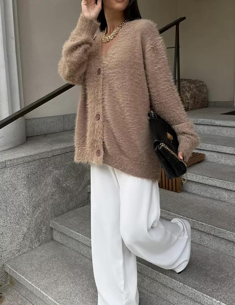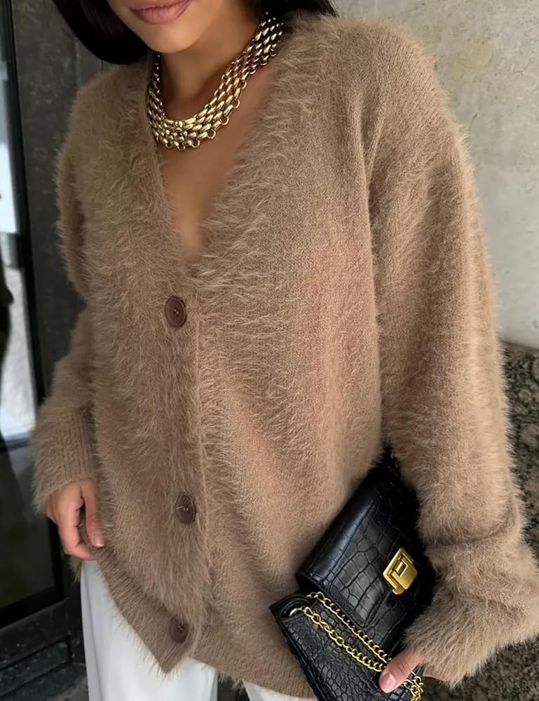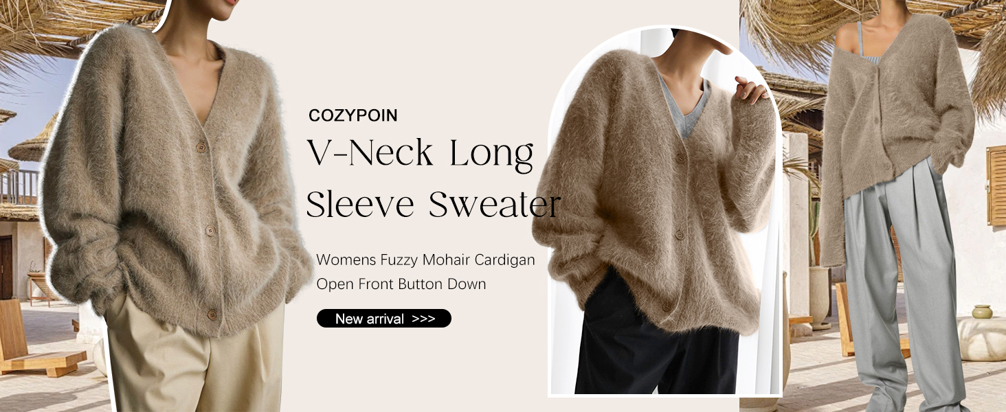 سترة COZYPOIN للسيدات من الموهير الغامض مفتوحة من الأمام وزر سفلي ورقبة على شكل حرف V وأكمام طويلة معطف منسوج بكتف منسدل (كاكي-M)
