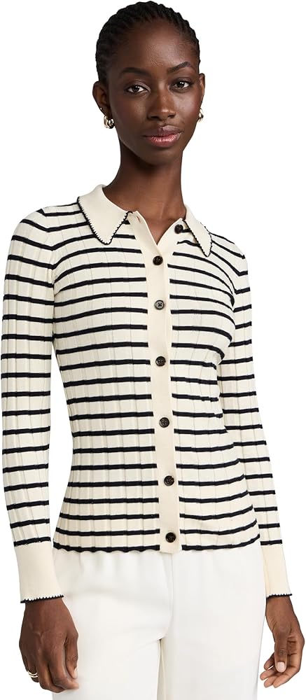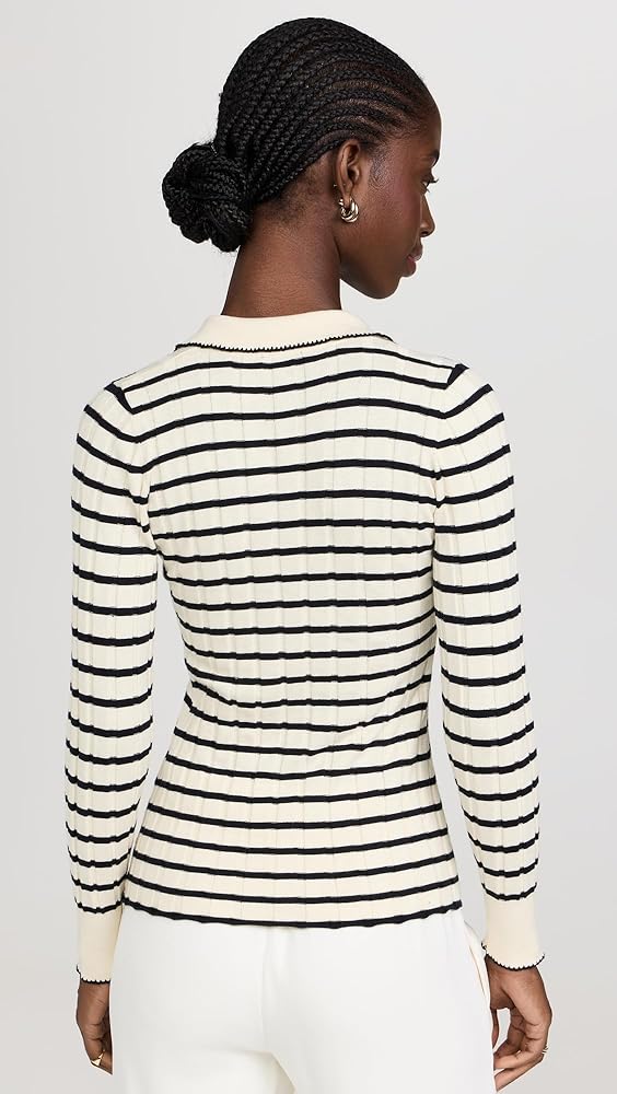 - نمط مخطط، خياطة متباينة عند الياقة