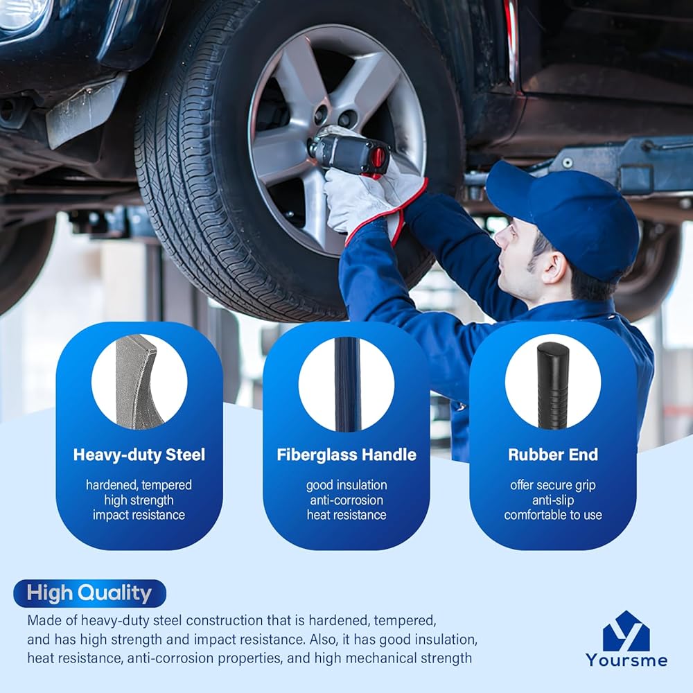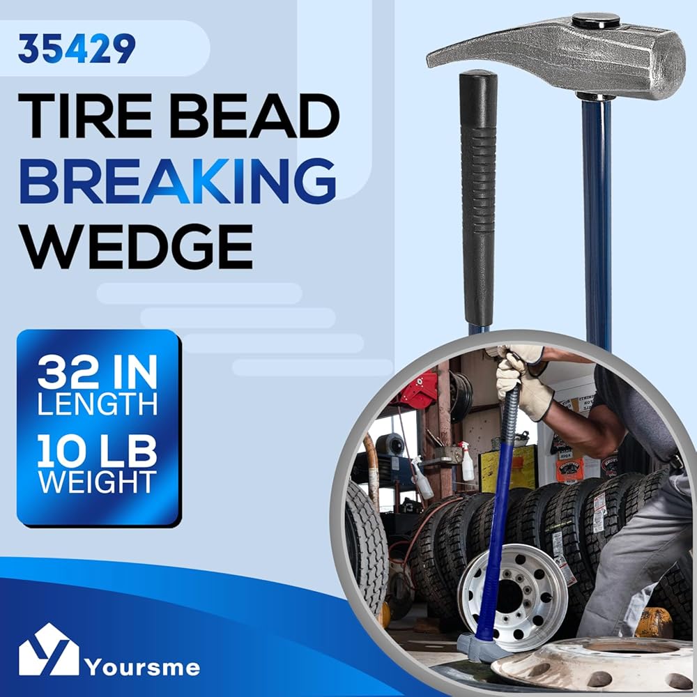 High Quality -- The bead breaking wedge is made of heavy-duty steel construction that is hardened, tempered, and has high strength and impact resistance. The fiberglass handle is professionally designed for comfortable use. It also has good insulation, heat resistance, anti-corrosion properties, and high mechanical strength.