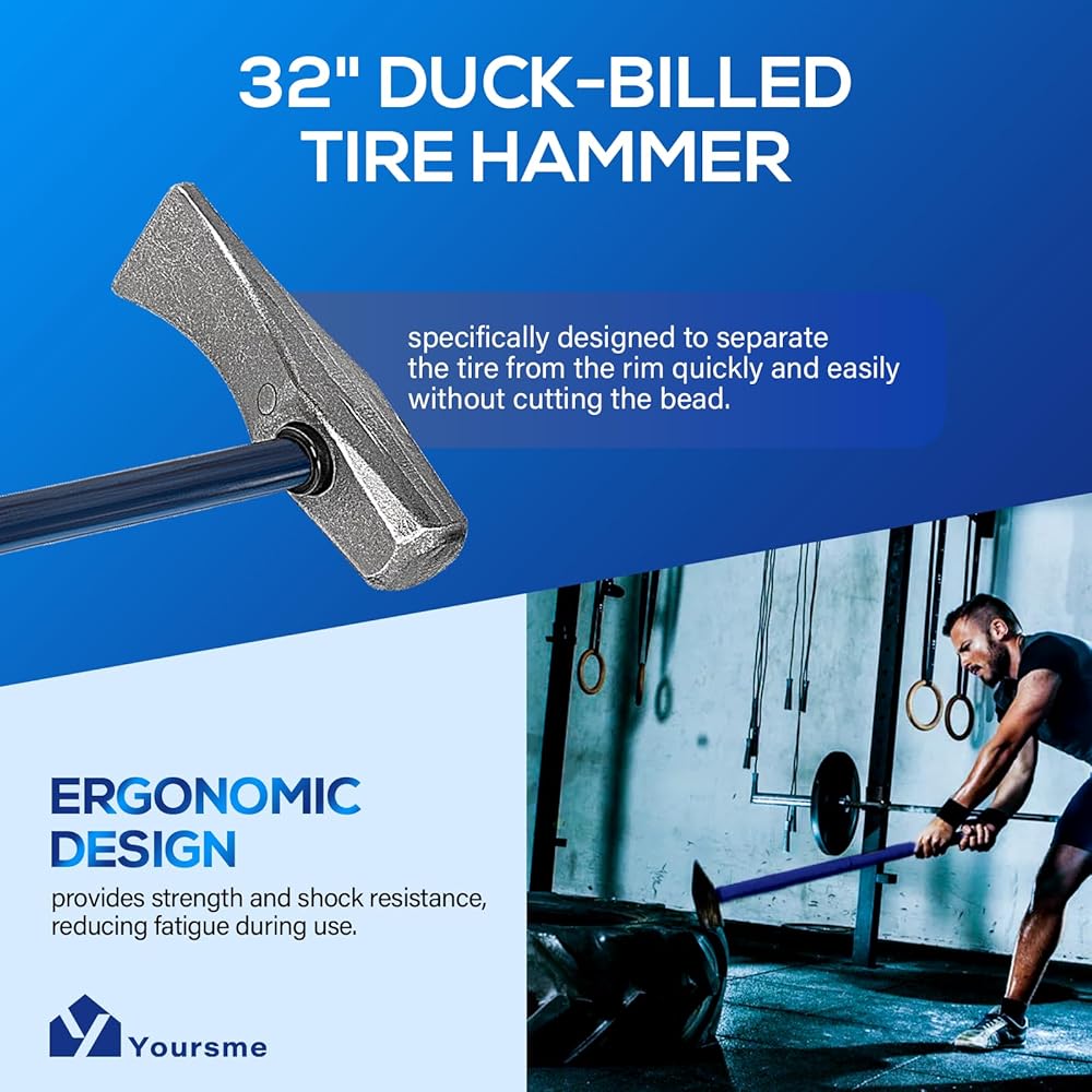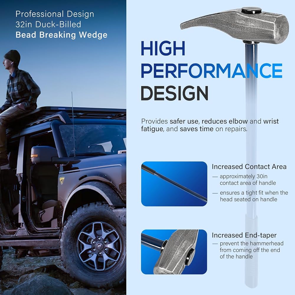 Powerful Features -- The 32" Duck-Billed tire hammer is designed for repairing and picking up car tires. It is specifically designed to separate the tire from the rim quickly and easily without cutting the bead. The ergonomic design provides strength and shock resistance, reducing fatigue during use.