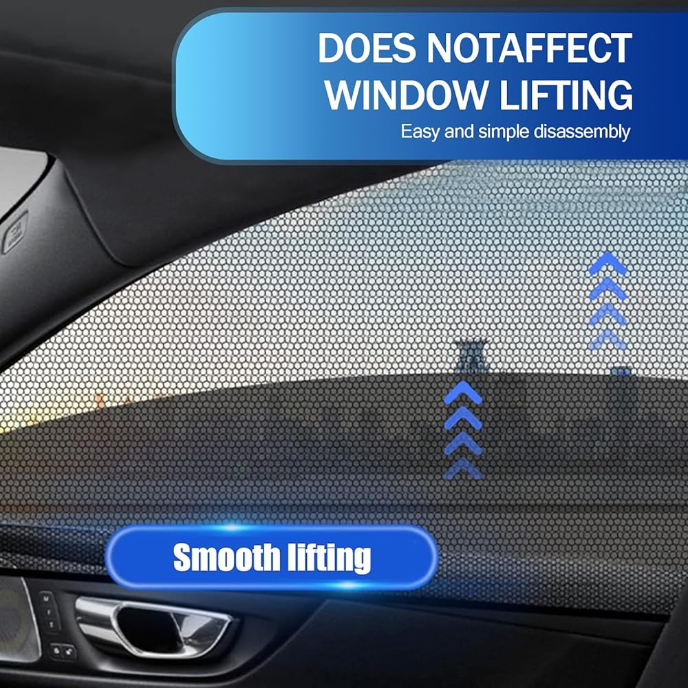 • Ventilable: The car sunshade is designed to cover the entire outer window frame and is completely breathable to maintain air circulation in the car. At the same time, you can still raise and lower the windows normally, enjoying the cool and fresh air in the car without having to endure the sunlight.