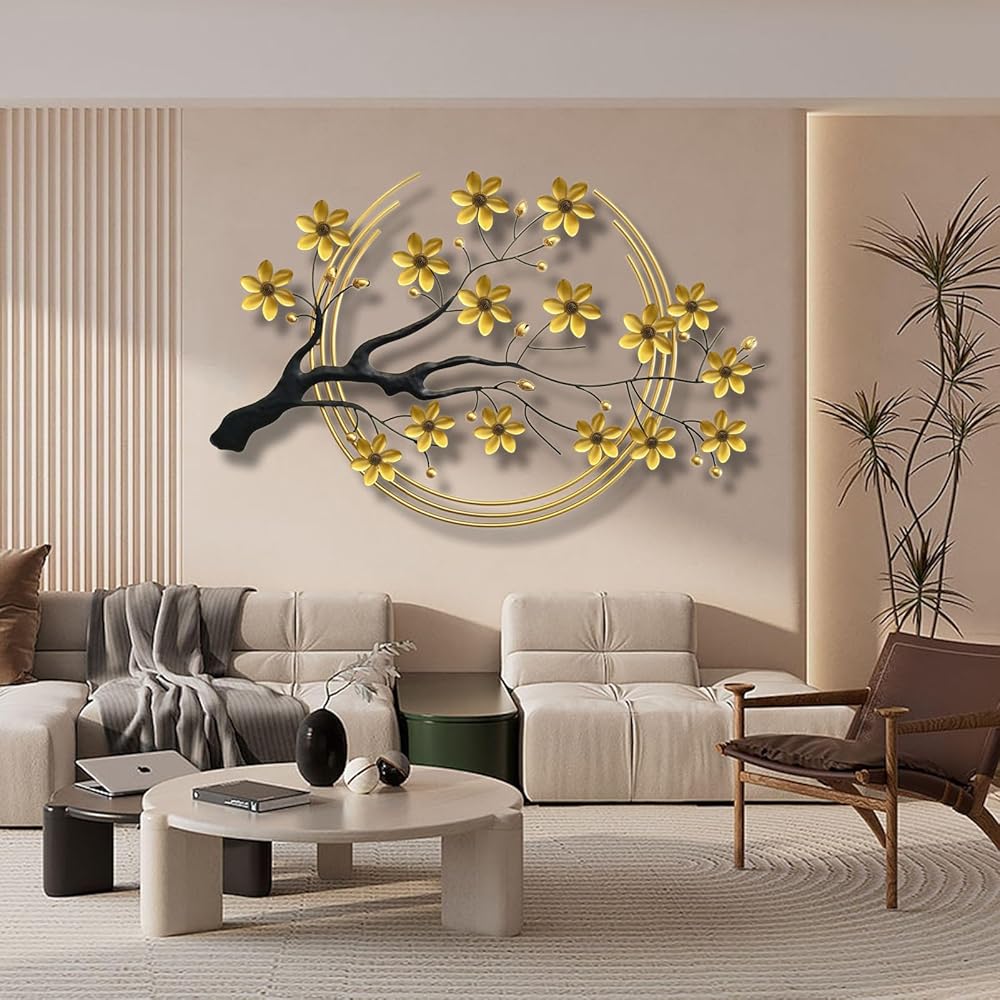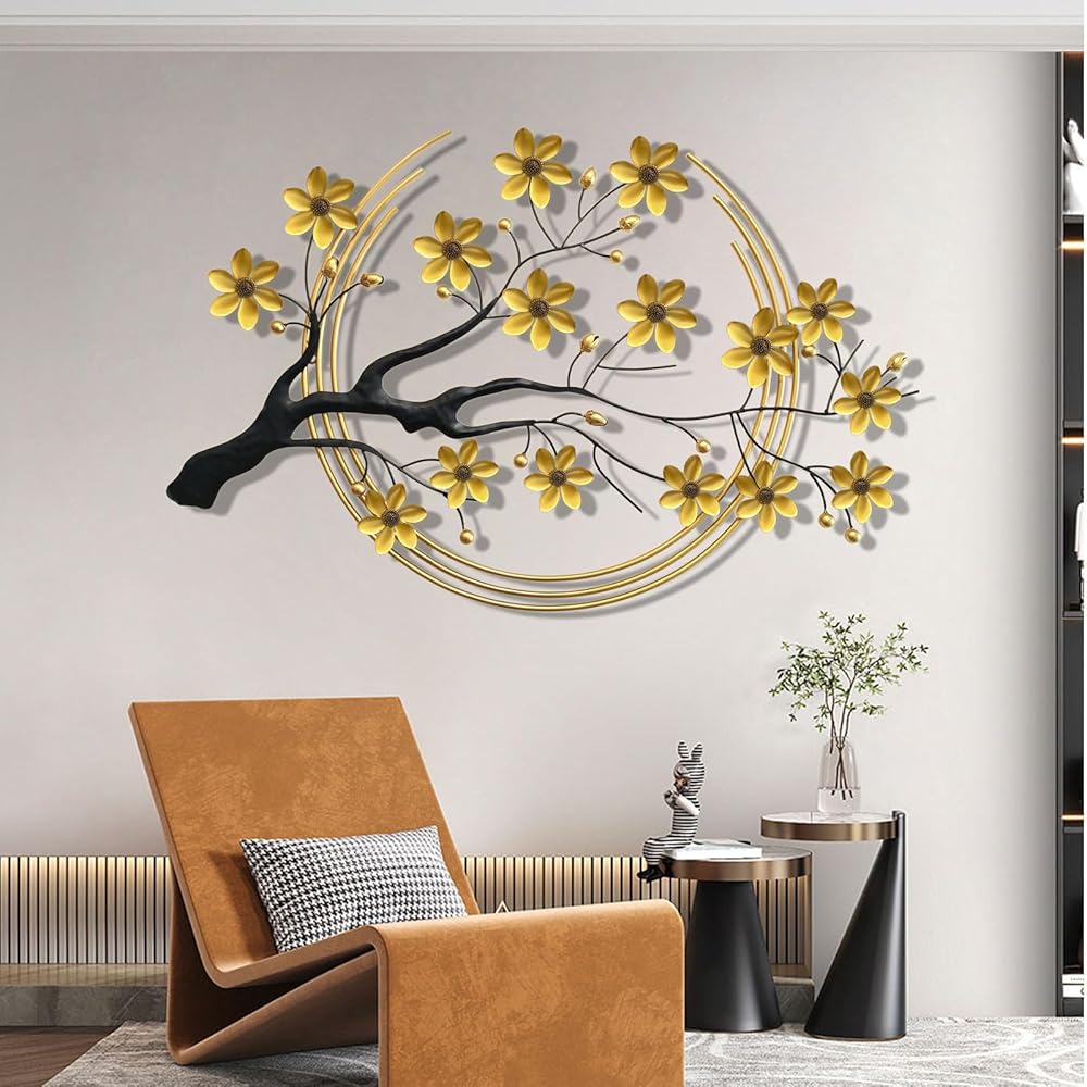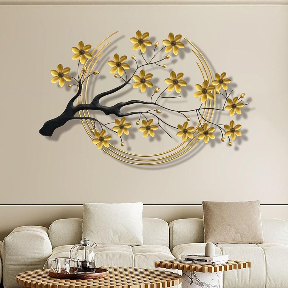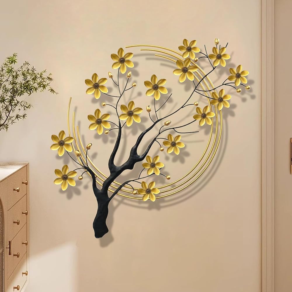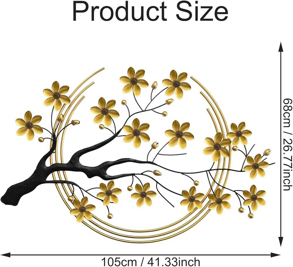 تصميم فريد: ديكور حائط معدني له تأثير ثلاثي الأبعاد قوي، الشجرة مليئة بالزهور الذهبية، الزهرة الذهبية إلى الحياة، طبقات وشفافة، تضيف لمسة من الفخامة البسيطة إلى منزلك.