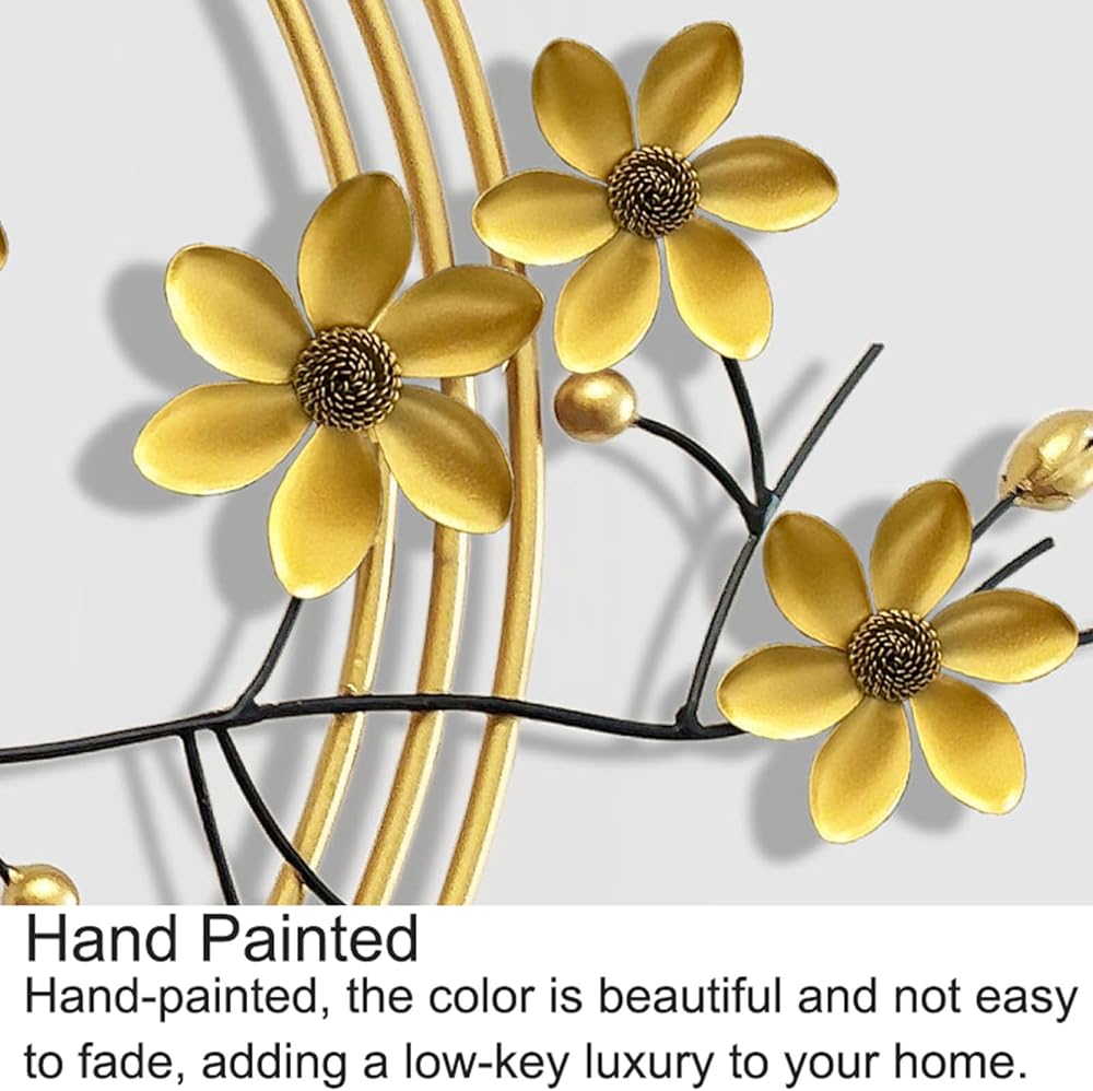 جودة ممتازة: العمل الفني لتزيين الحائط على شكل زهرة ذهبية معدنية مصنوع من الحديد، والجودة صلبة، وصناعة متقنة، وليس من السهل أن تصدأ. صناعة يدوية رحلان كهربي - برايمر - رش بلاستيك إلكتروستاتيك - خبز بدرجة حرارة عالية 180 درجة - طلاء مؤثر.