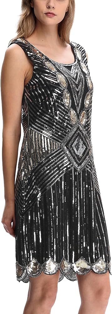 Superior Material & Well Made: The inside of the flapper dresses is lined with a silky-like material which is comfortable to wear and is not itchy. The 1920s dresses for women is very lightweight and will not show any wrinkles whatsoever. What's more, the sequins stitched firmly will not be easy to fall off
