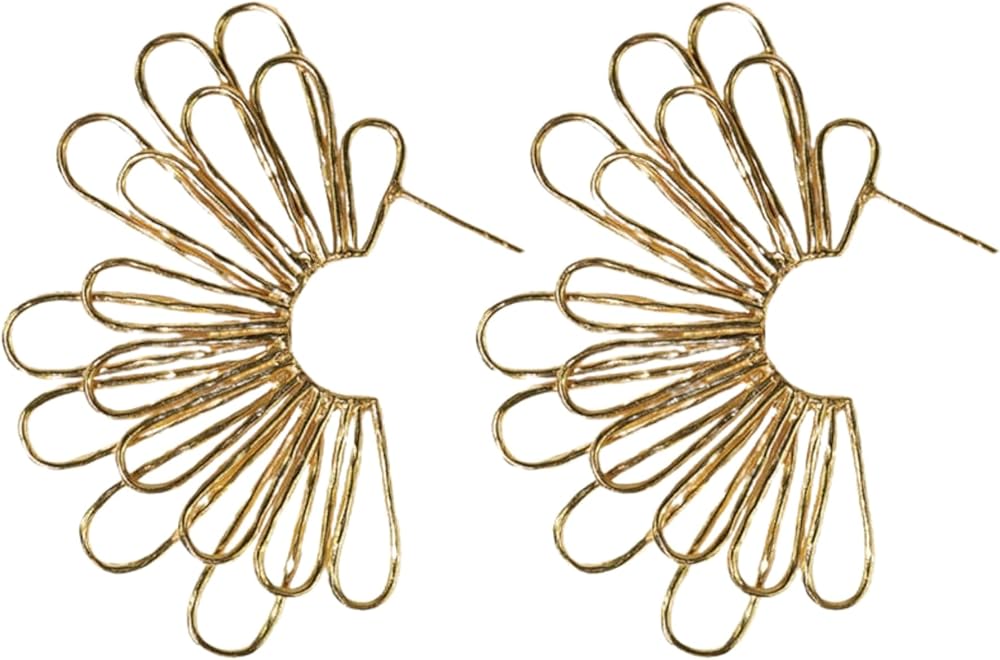 أقراط مروحية مذهلة: تعرض أقراط فلورنسا ترتيبًا مذهلاً بمقاس 2.55 بوصة من الحلقات المعدنية الرقيقة. يخلق هذا التصميم الفريد ذو الطبقات تأثيرًا منحوتًا ساحرًا يلتقط الضوء والحركة، مما يضفي انطباعًا جريئًا.