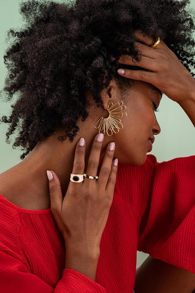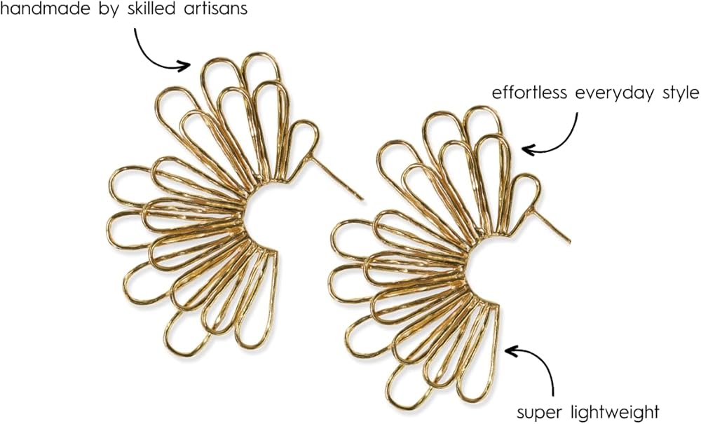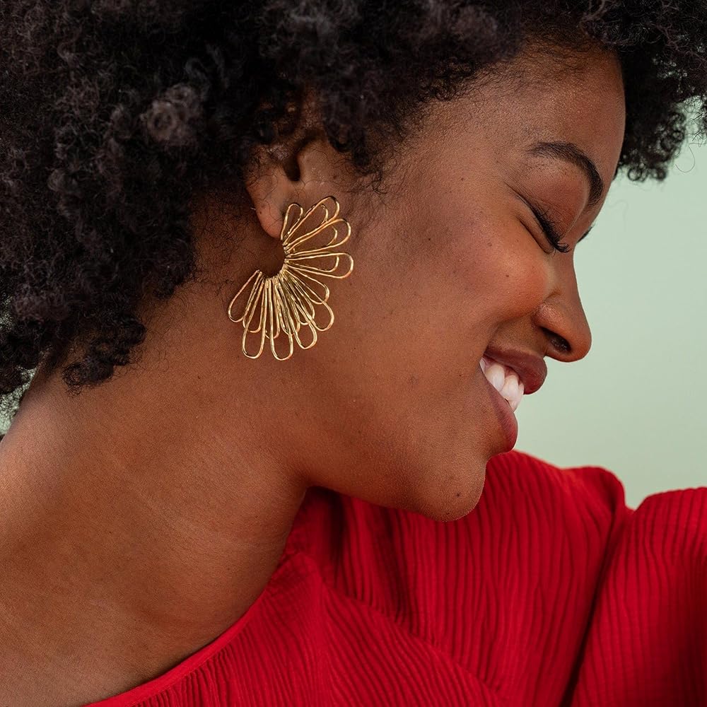 أقراط ذهبية متعددة الاستخدامات: تنتقل هذه الأقراط بسهولة من المظهر النهاري غير الرسمي إلى السحر البوهيمي المسائي. لونها الذهبي وتصميمها الفني يجعلها قطعة مميزة ترتقي بأي زي، بدءًا من التيشيرتات البسيطة وحتى الفساتين الطويلة المتدفقة.