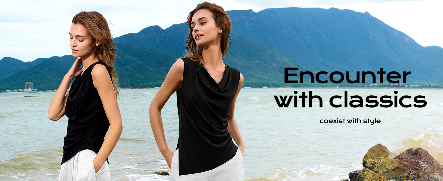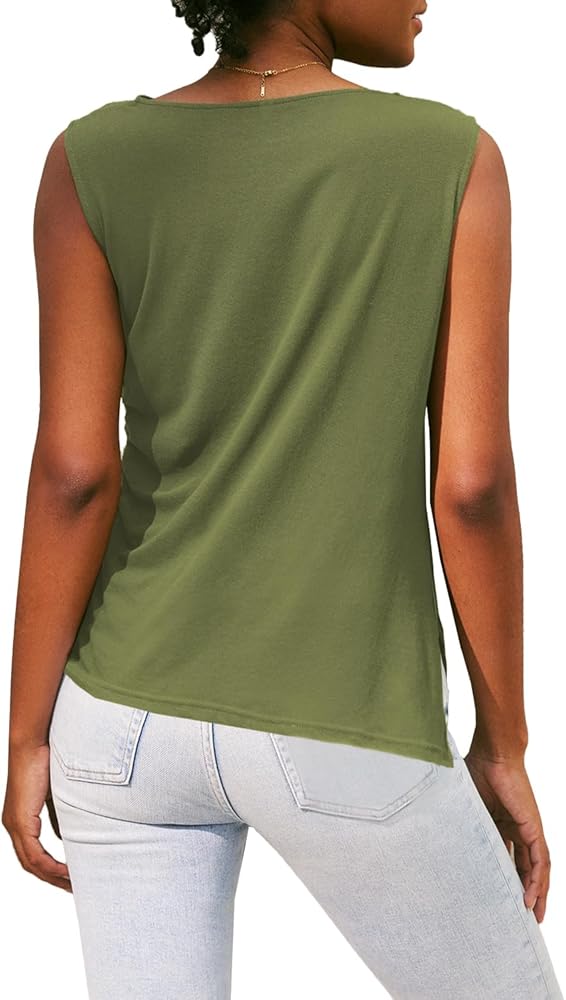 【خامة فاخرة】قمصان نسائية بدون أكمام برقبة على شكل بقرة مصنوعة من القطن بنسبة 100% مما يجعلك تشعرين بالنعومة والراحة طوال اليوم. ملمس خفيف، صديق للبشرة، مسامي ولكن غير شفاف، مناسب لأيام الصيف الحارة.