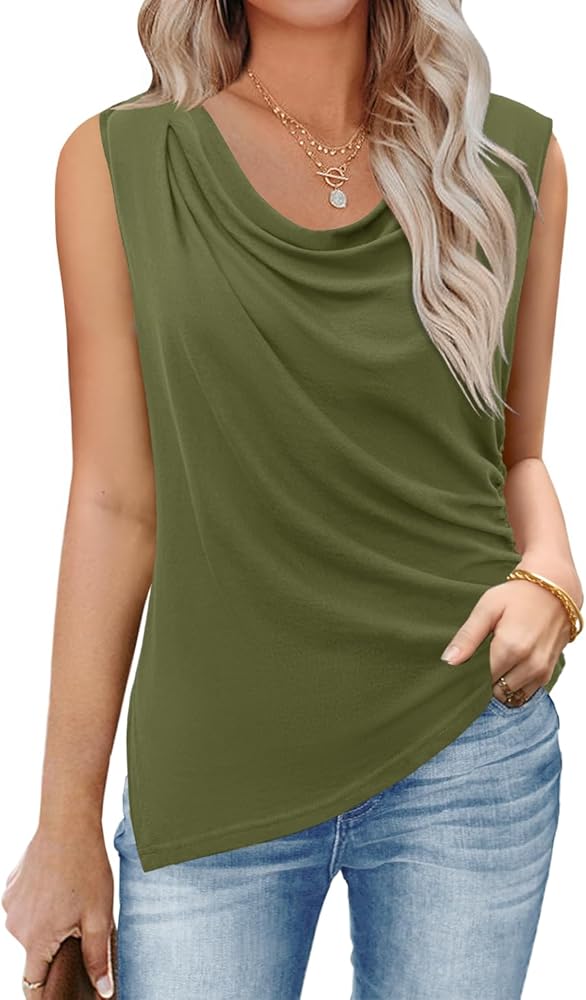 【تصميم فريد】تتميز هذه القمصان النسائية الكاجوال بدون أكمام بخط عنق على شكل بقرة، وبدون أكمام، وألوان ثابتة وتقسيم غير منتظم. تسمح لك الرقبة المكشكشة بإظهار خط الرقبة الجذاب، كما أن تصميم الأزياء غير المنتظم يجعلك مميزًا بين الآخرين.