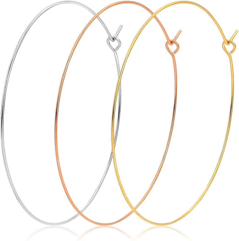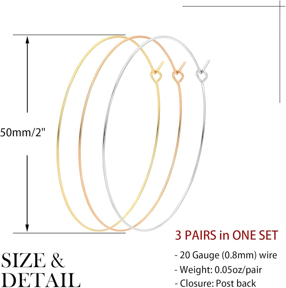 • مجموعة من 3 ألوان: تشمل الأطواق الذهبية والذهبية الوردية والفضية. الأقراط الحلقية الكبيرة خفيفة الوزن، ولكن بقطر 3.5 بوصة (90 ملم) ستلفت الانتباه بالتأكيد! السلك بمقاس 20 (0.8 ملم)، الوزن 0.05 أونصة لكل زوج، جسم خفيف الوزن يضمن سهولة الارتداء طوال اليوم.
