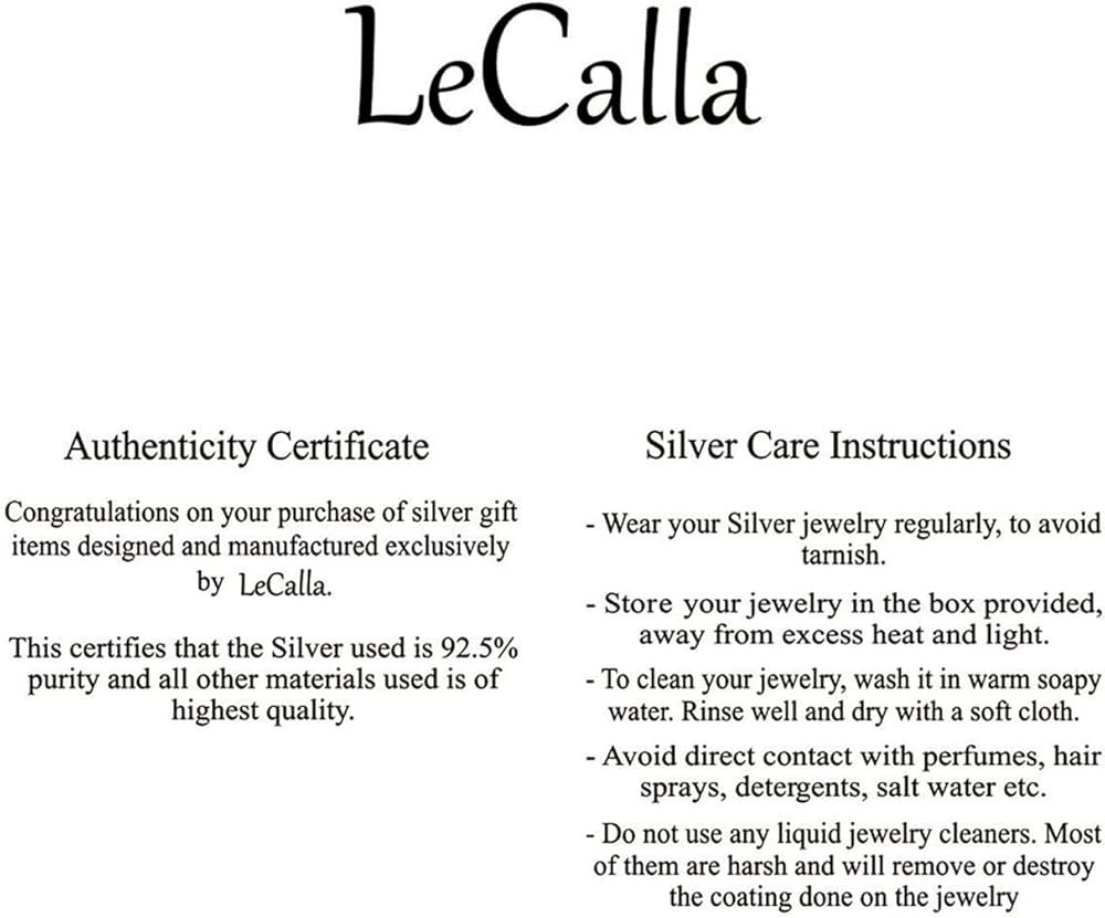 طلاء خاص مضاد للتشويه: تقدم LeCalla مجوهرات سلاسل من الفضة الإسترلينية عالية الجودة وبأسعار معقولة للنساء والرجال. وهو مطلي بطبقة خاصة مضادة للتشوه تحافظ على بريقه ولمعانه لفترة طويلة.